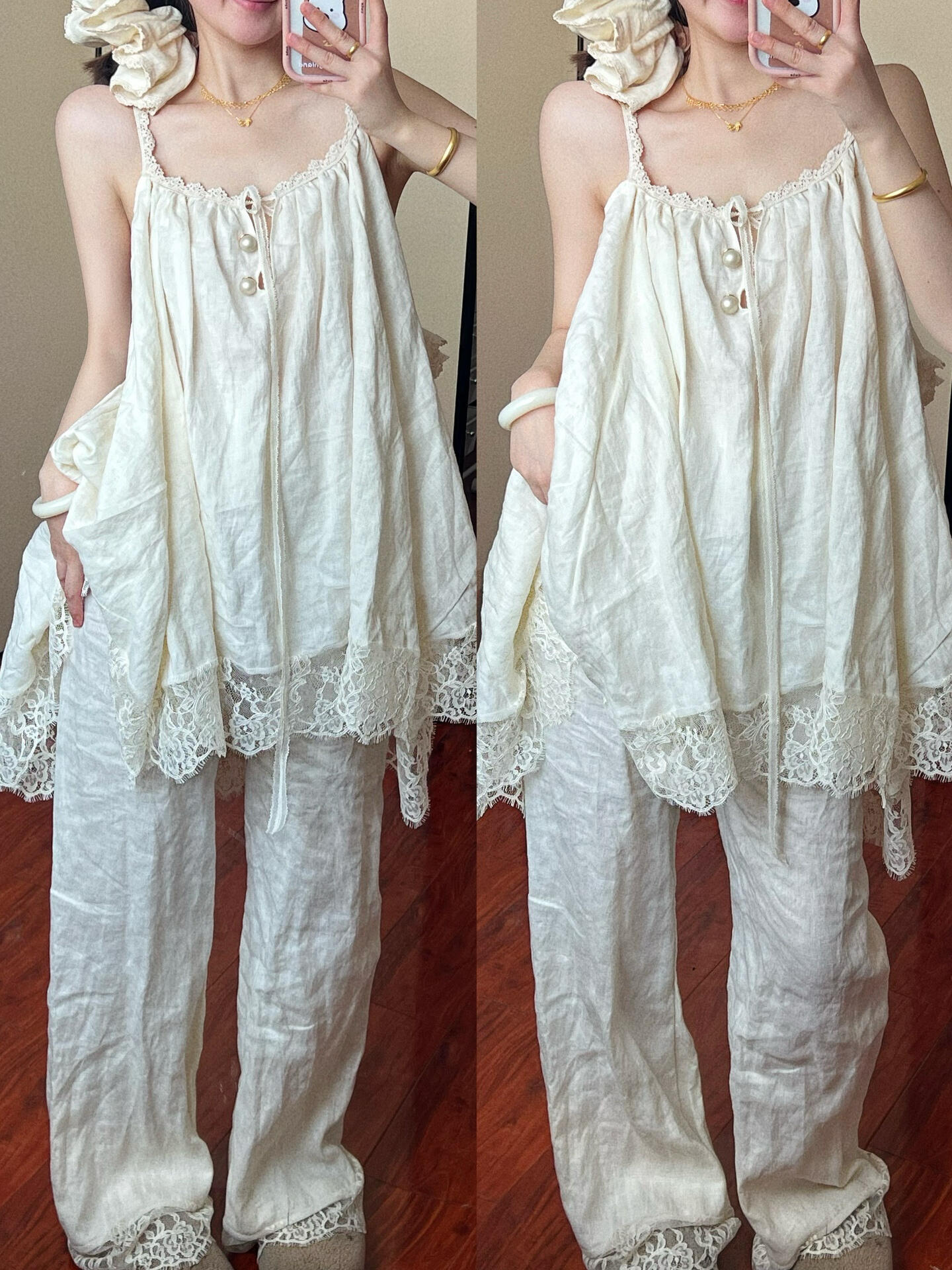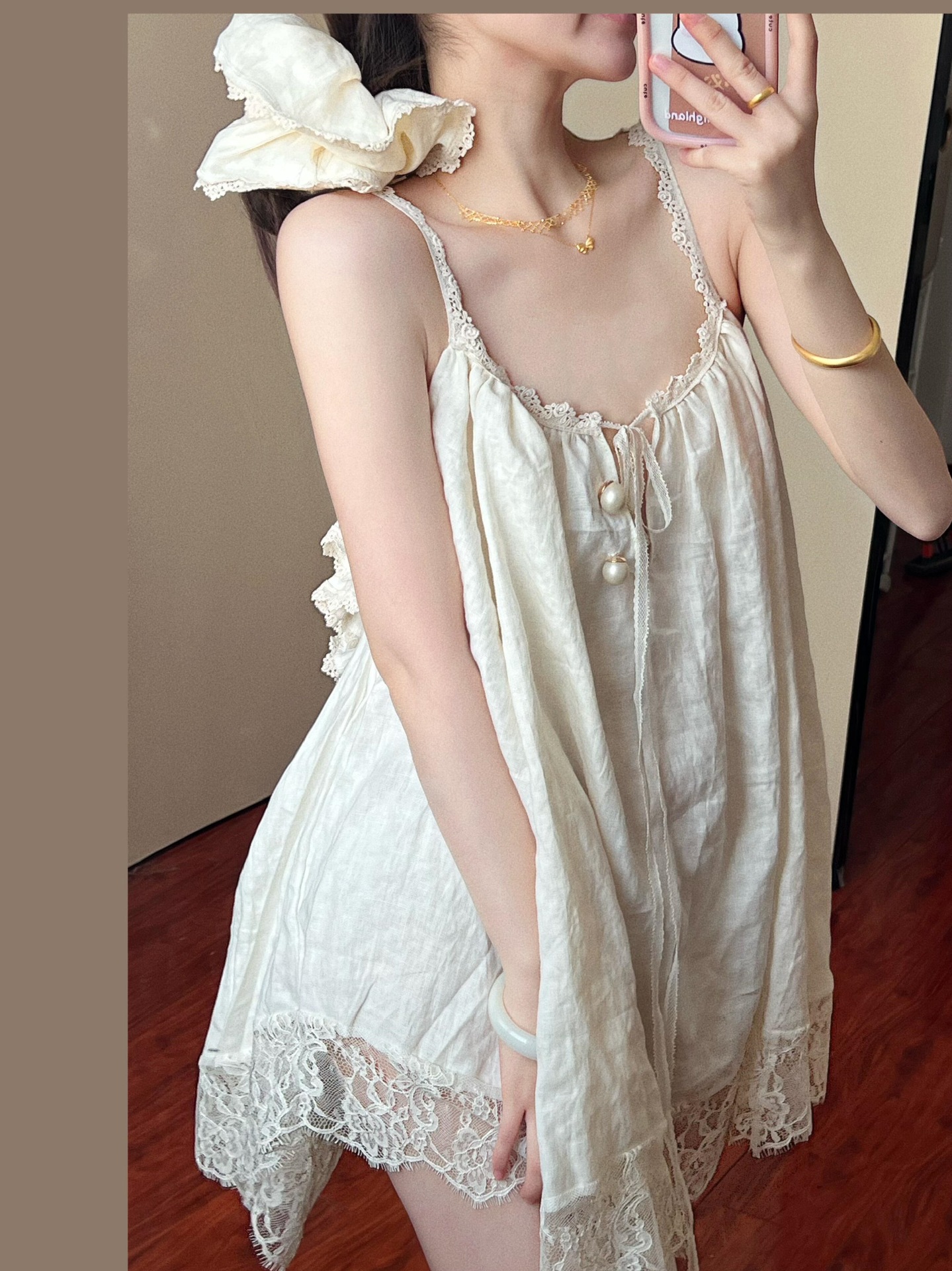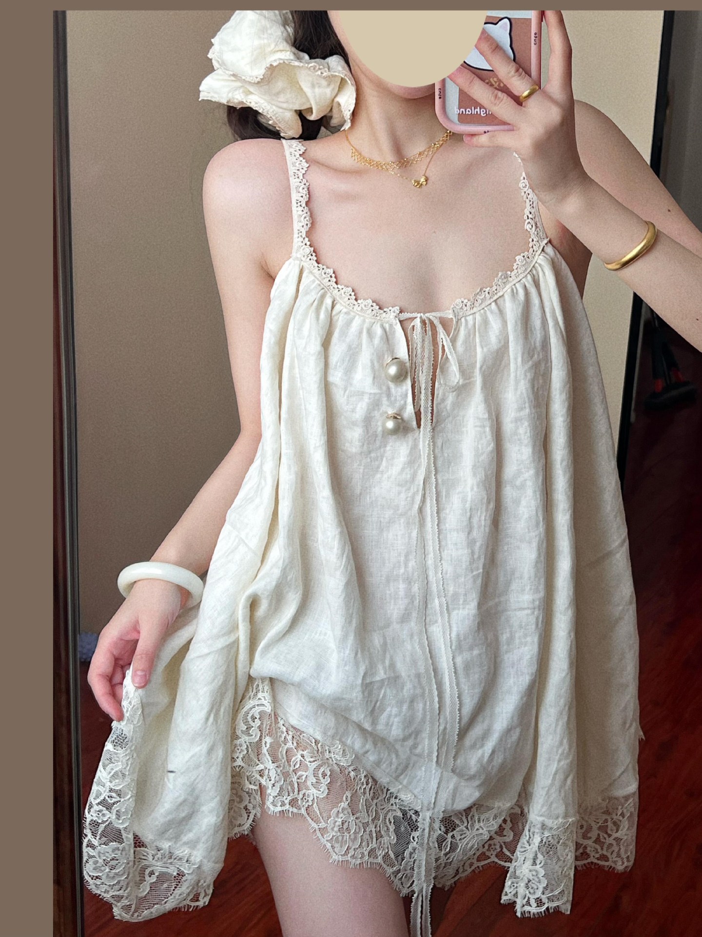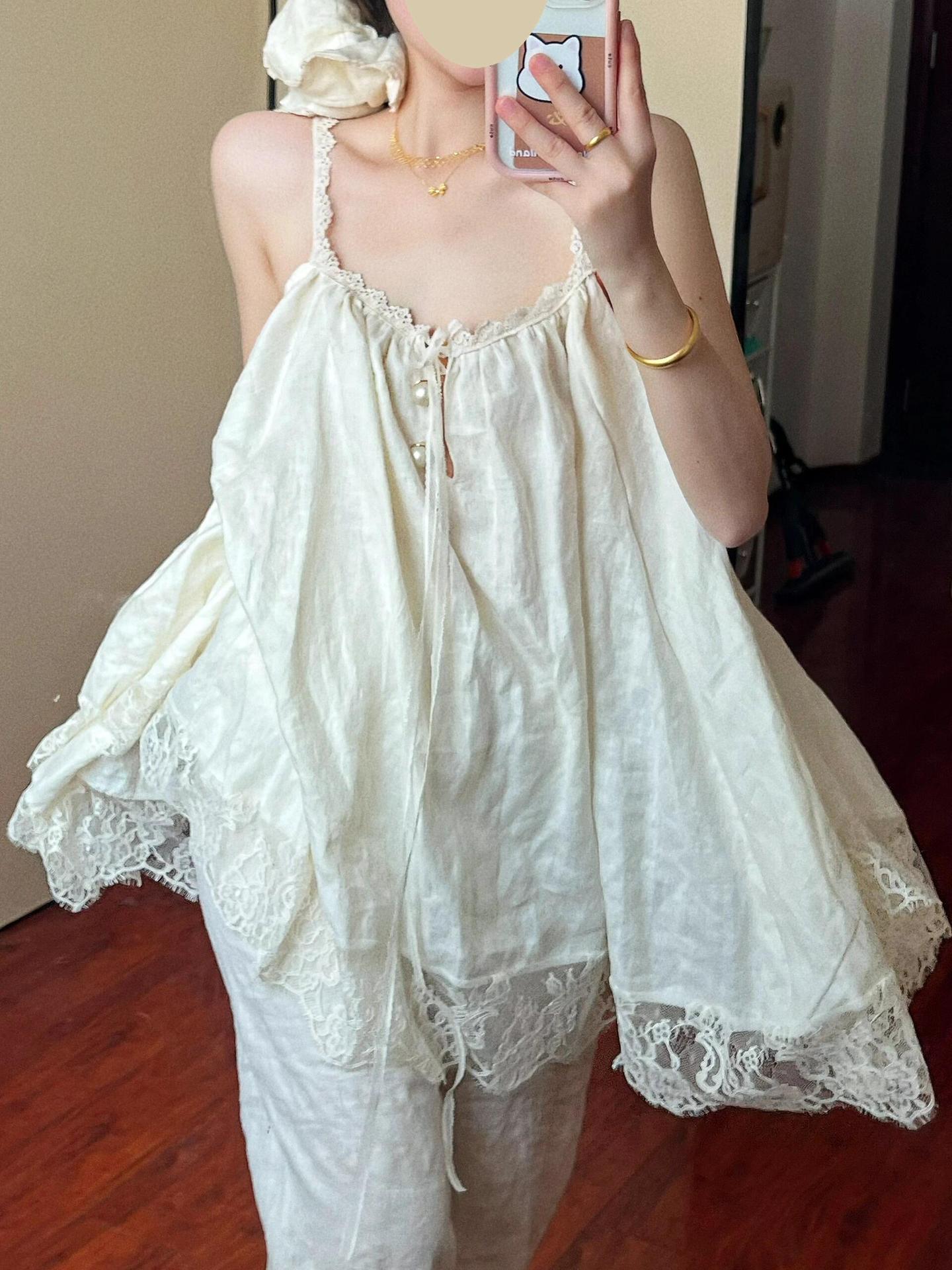 여성을위한 프랑스 궁전 스타일 레이스 서스펜더 잠옷 여름 새로운 대형 사이즈 홈웨어 잠옷 외부에서 착용 가능스토어 가기