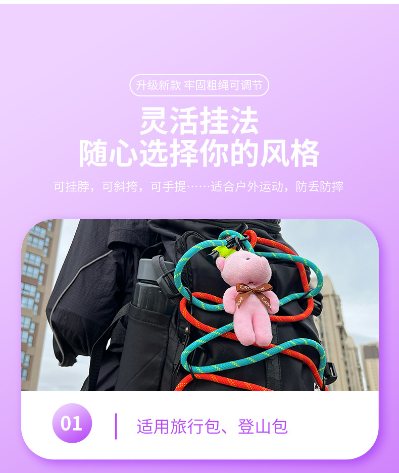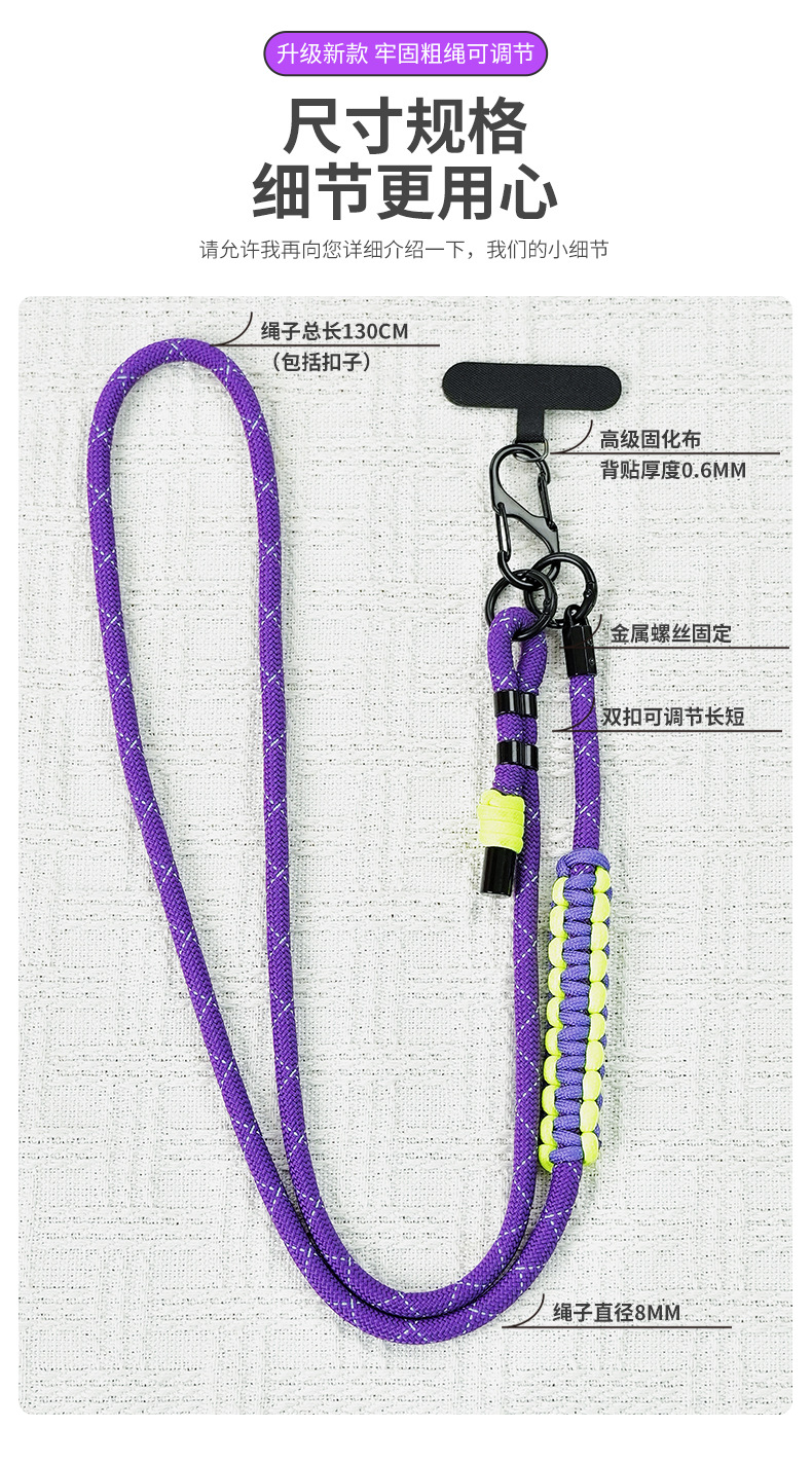 8MM 야외 다기능 백 로프 조정 가능한 분리형 휴대 전화 케이스 클립 인형 카메라 키 체인 휴대 전화 끈