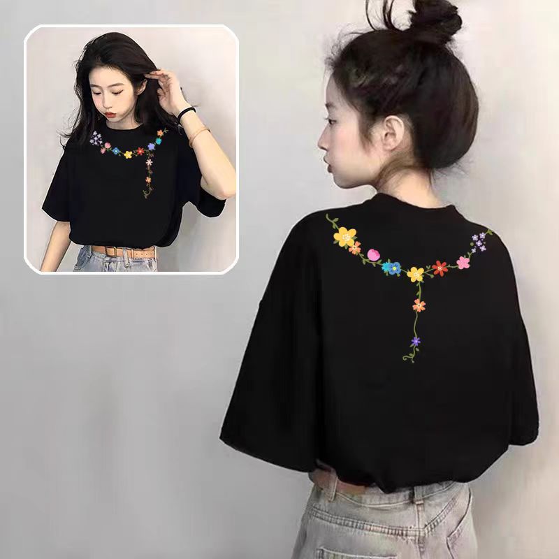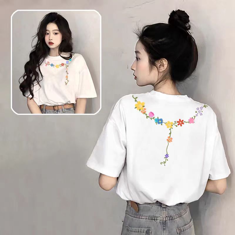 여성을위한 순수 코튼 반팔 티셔츠 2025 새로운 핫 스타일 여름 디자인 틈새 티셔츠 세련되고 다재다능한 탑스토어 가기