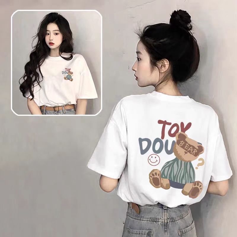 • 화이트-A59 귀여운 곰돌이 전후 사진 [순면 원단]