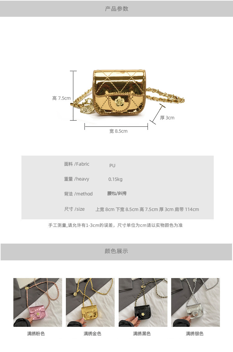 여자 가방 2025 새로운 패션 마름모 체인 허리 가방 미니 어린이 어깨 Crossbody 가방 여자 동전 지갑