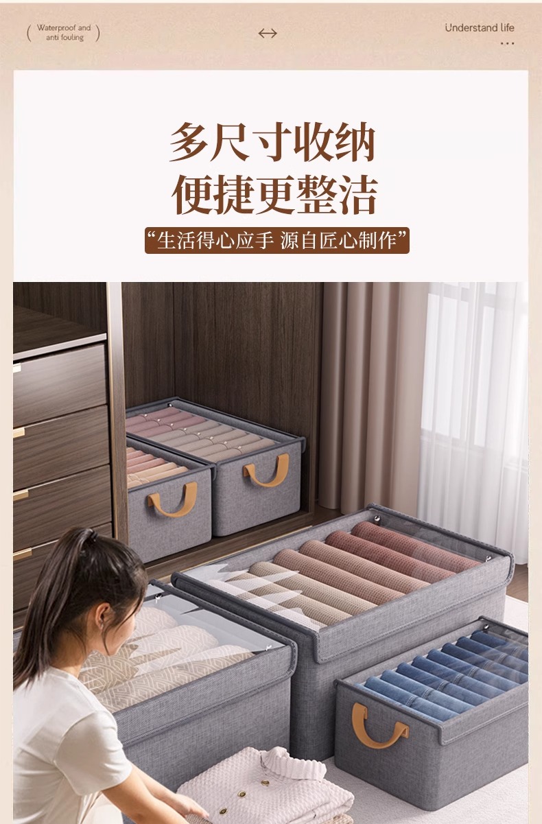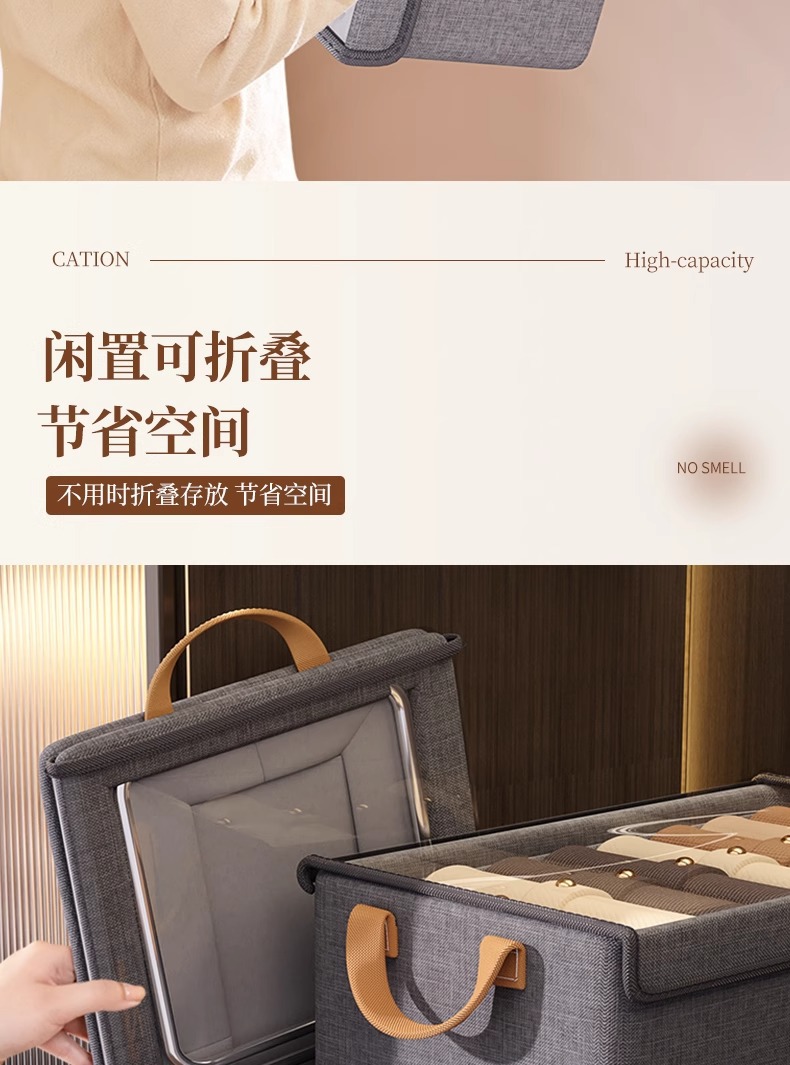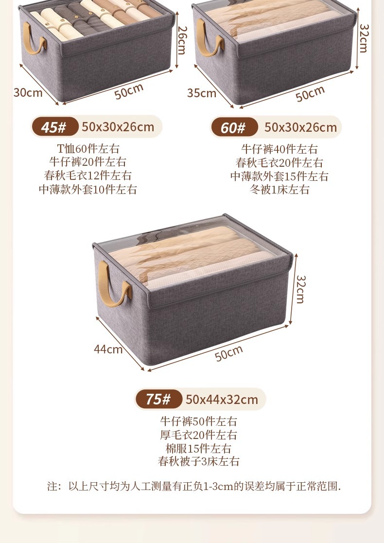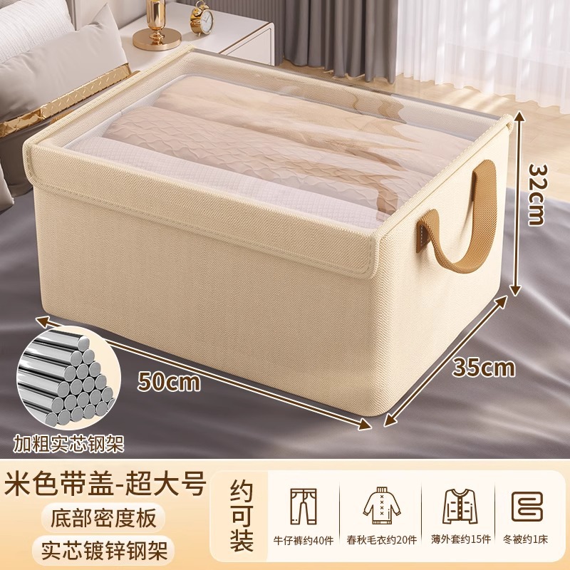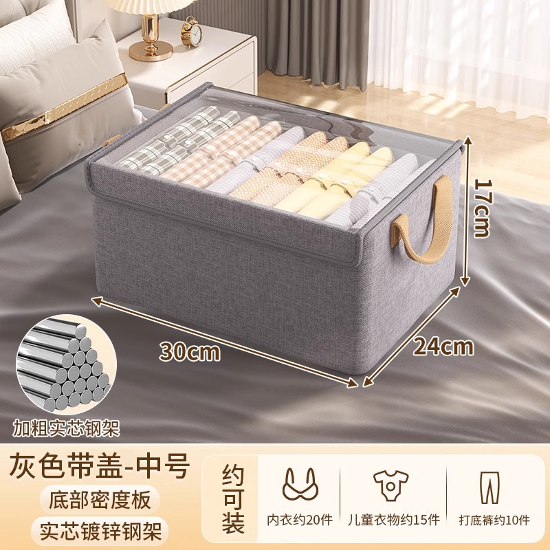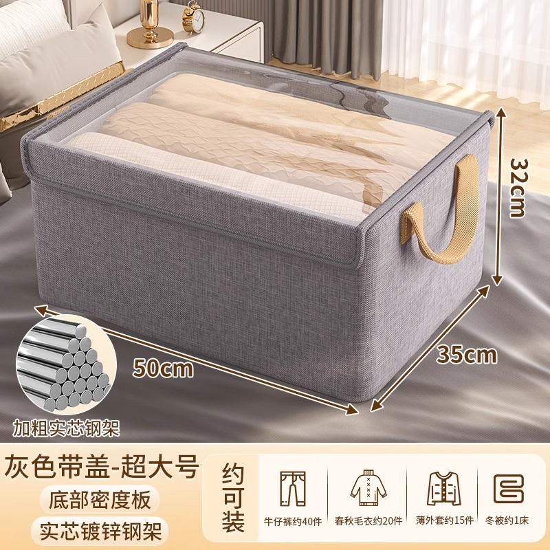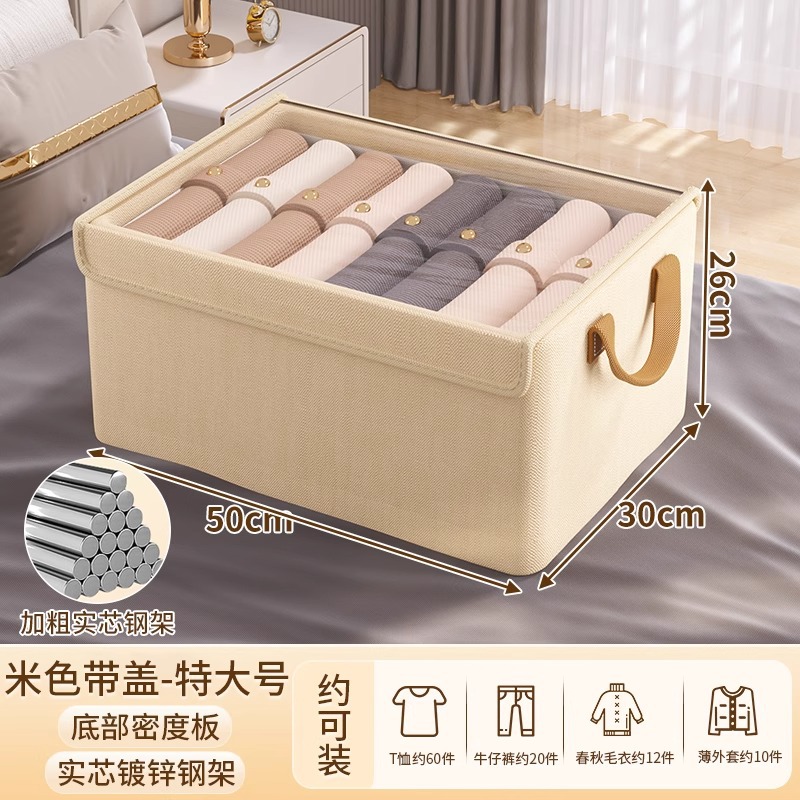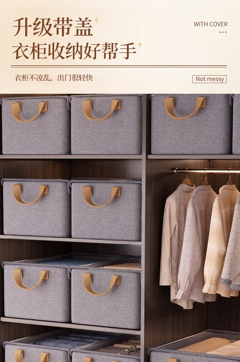 뚜껑이 있는 접이식 수납함, 가정용 옷장, 레이어드 아티팩트, 의류, 면 및 린넨 접이식 수납바구니, 정리함스토어 가기