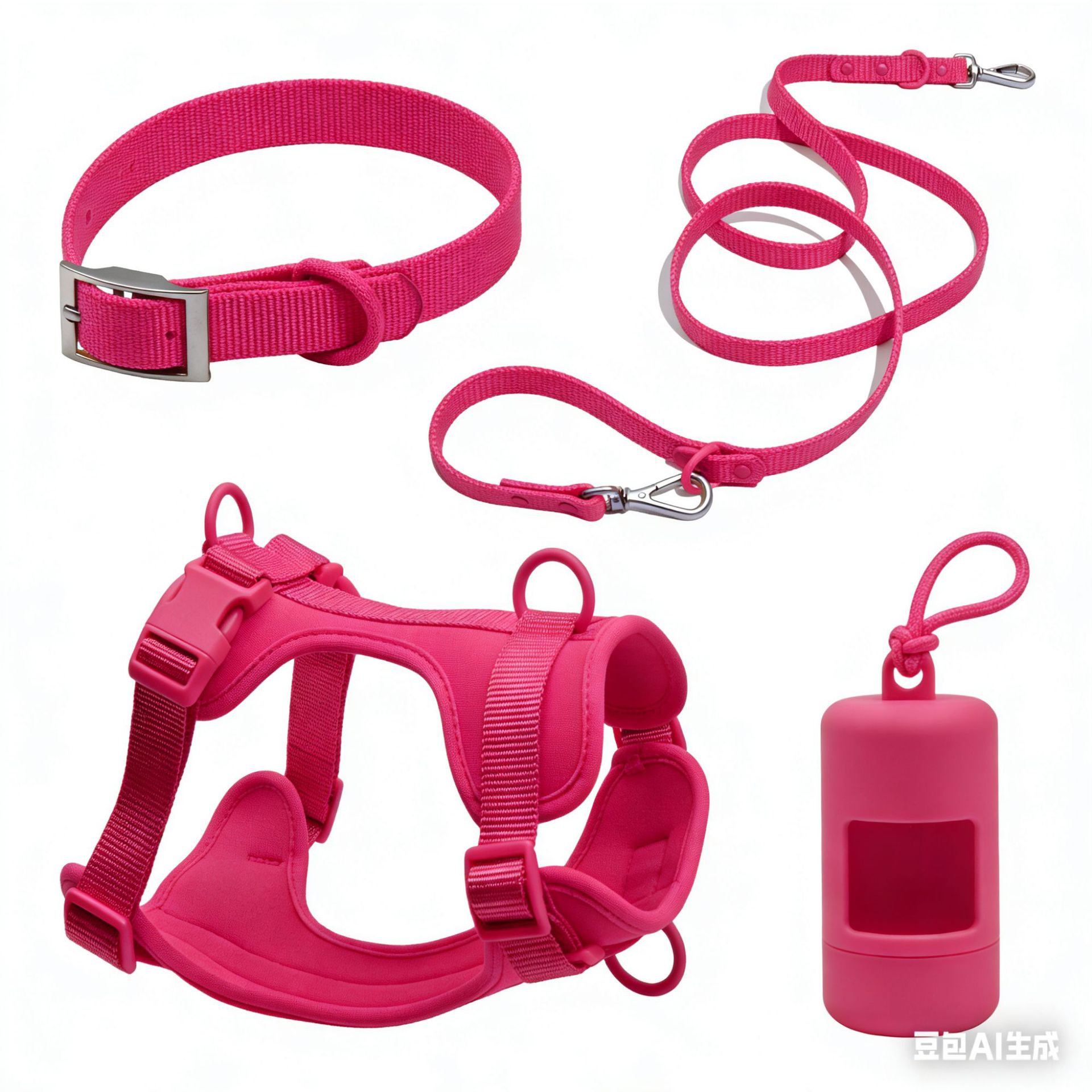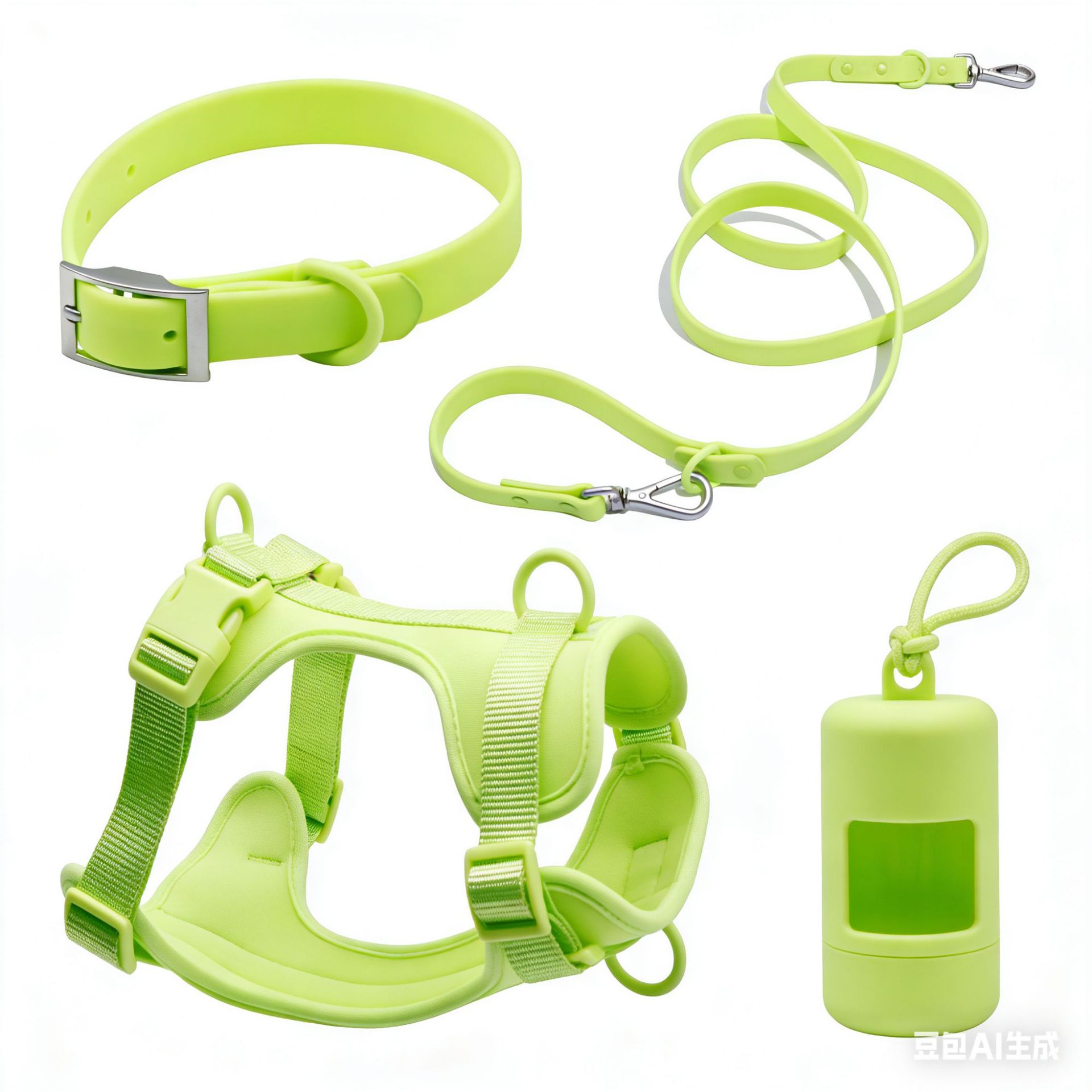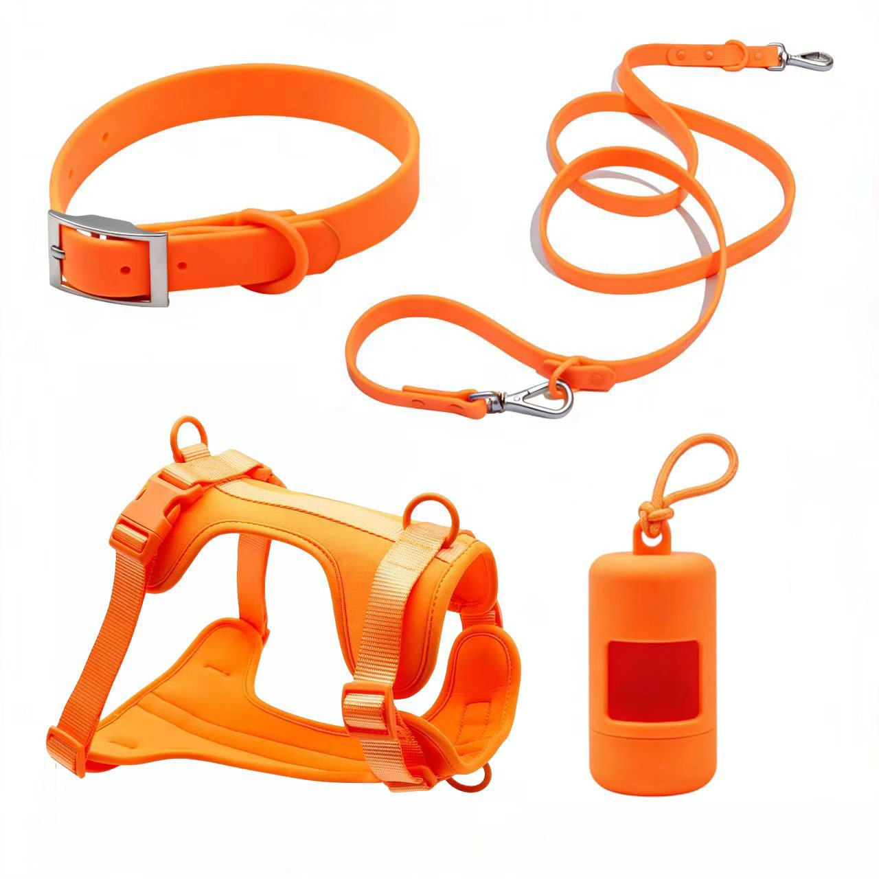 신제품 애완동물 용품 4종 세트, 물림 방지 방수 강아지 하네스, 소형견용 PVC 산책줄