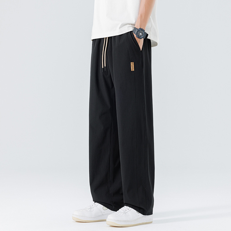 새로운 남성 캐주얼 바지 여름 통기성 얼음 실크 속건 바지 미국 트렌디 브랜드 루즈 스트레이트 바지 와이드 레그 바지