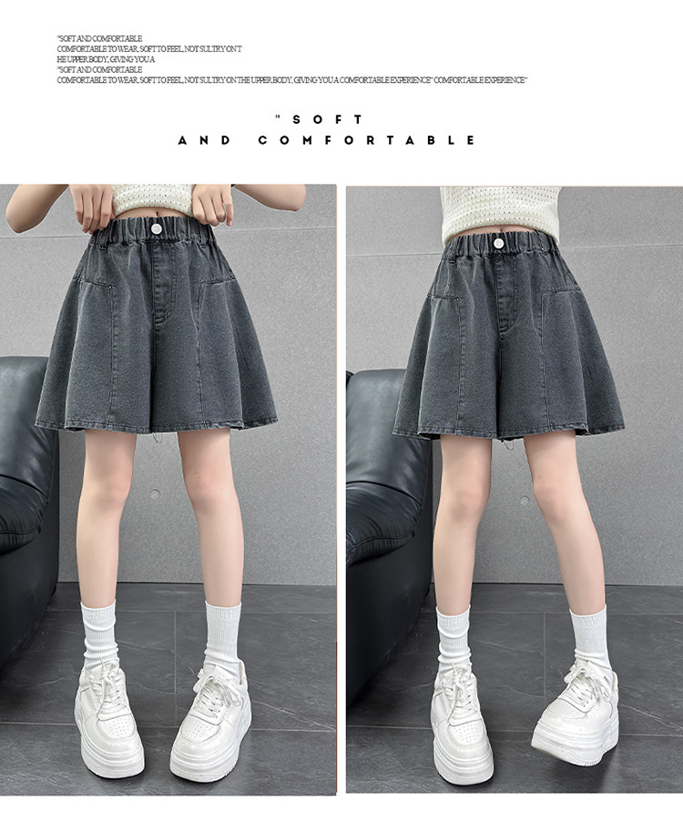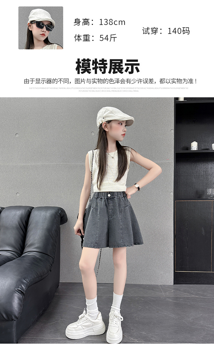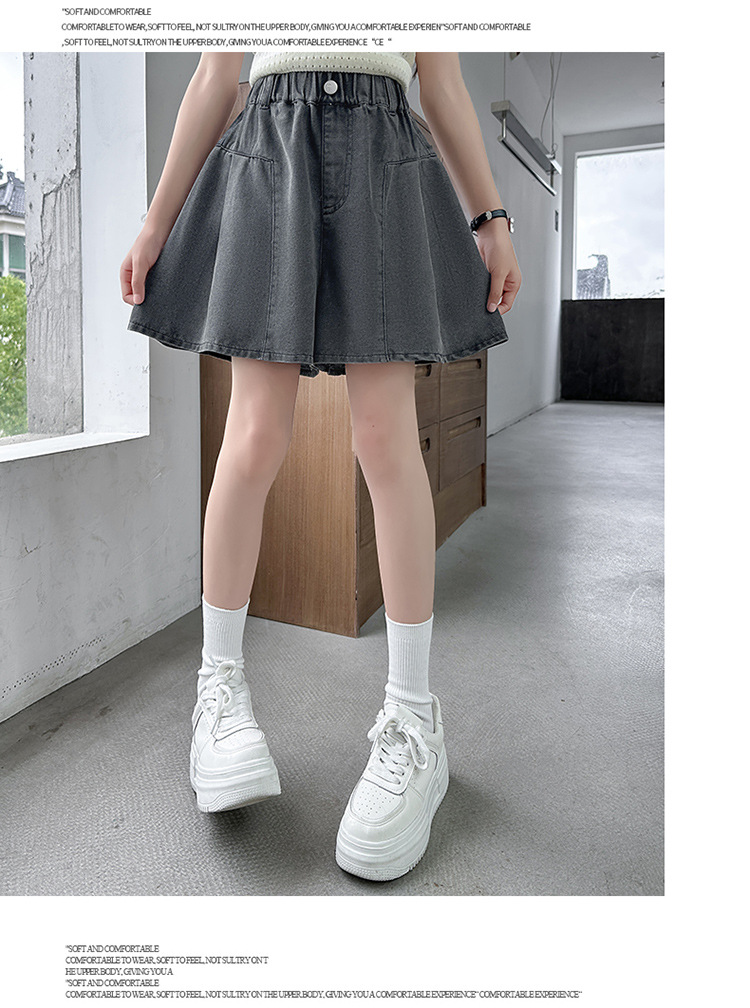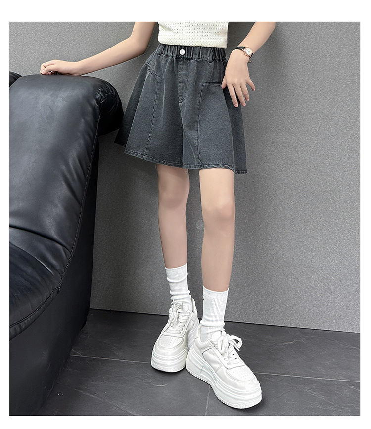 여자 스모크 그레이 데님 스커트 여름 얇은 2025 새로운 스타일 어린이 유행 여름 옷 여자 반바지스토어 가기