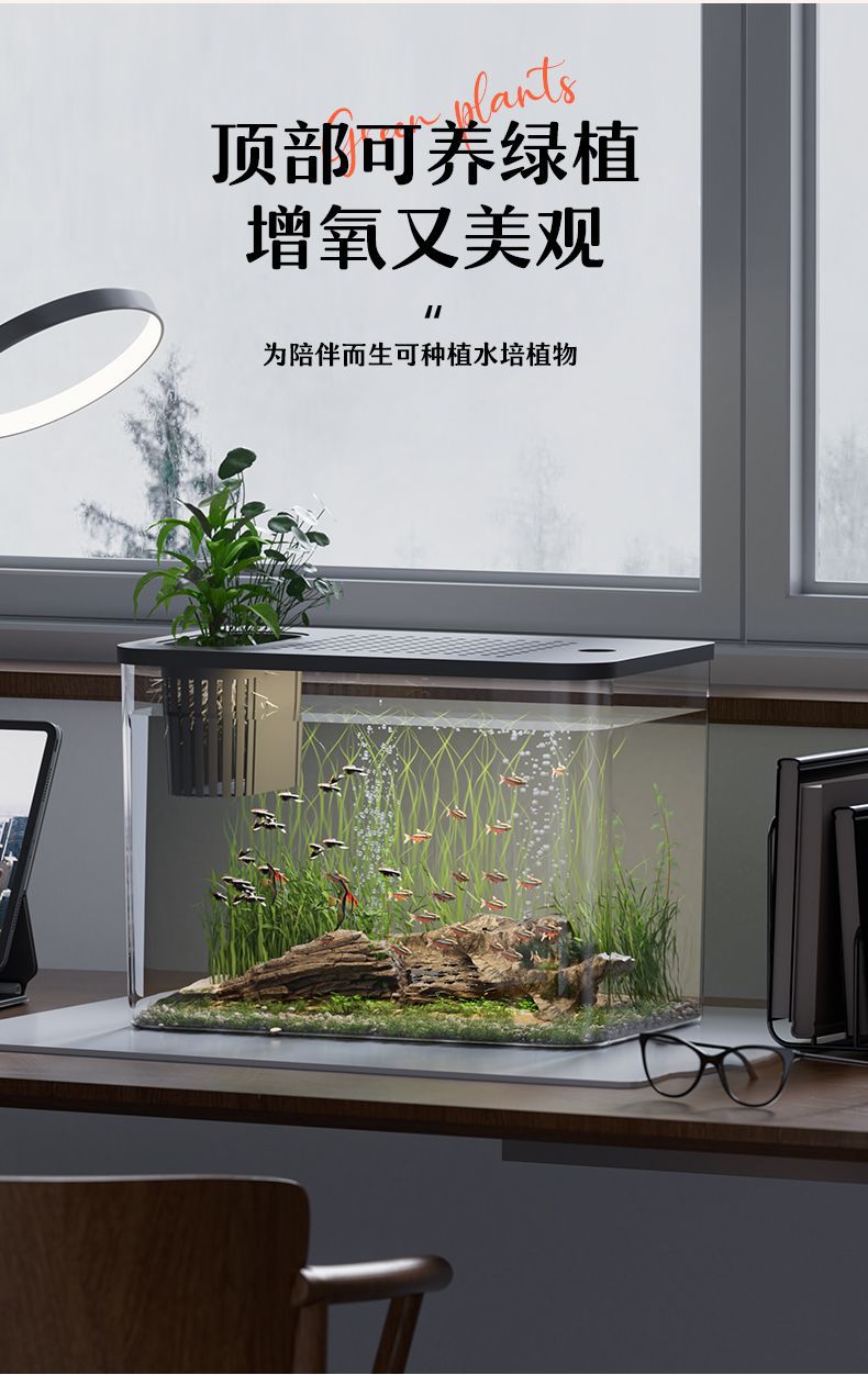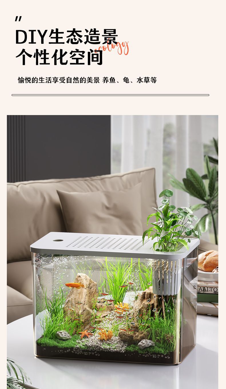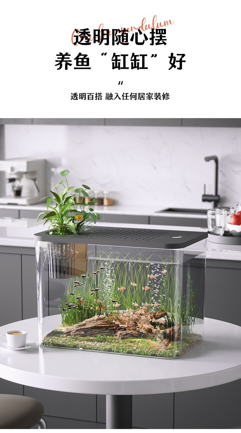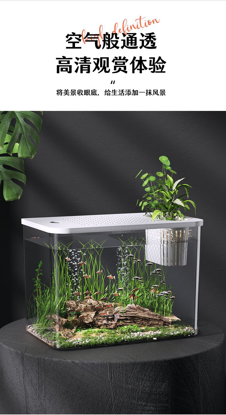 수조 수족관 홈 투명 데스크탑 생태 금붕어 탱크 거실 조경 작은 게으른 물고기 탱크 일체형