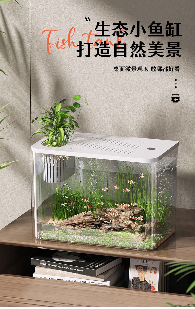 수조 수족관 홈 투명 데스크탑 생태 금붕어 탱크 거실 조경 작은 게으른 물고기 탱크 일체형스토어 가기