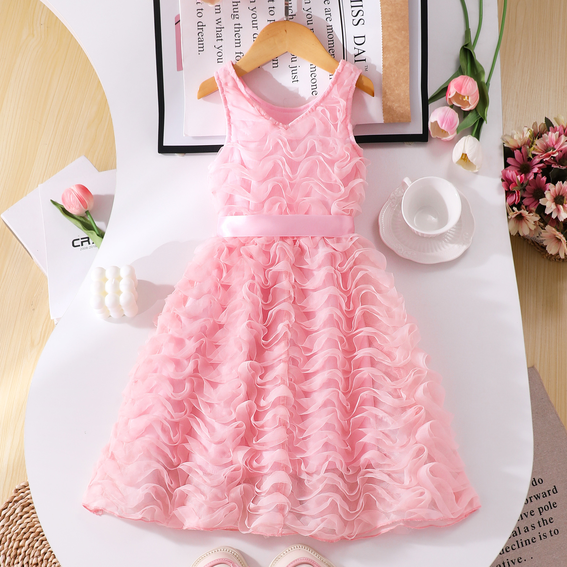 여아(소) 드레스, 입체 웨이브 스트립 우아한 파티 드레스