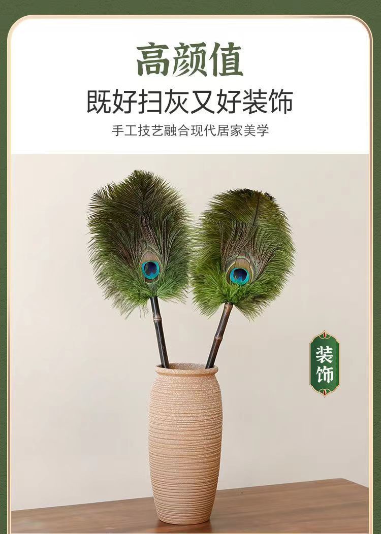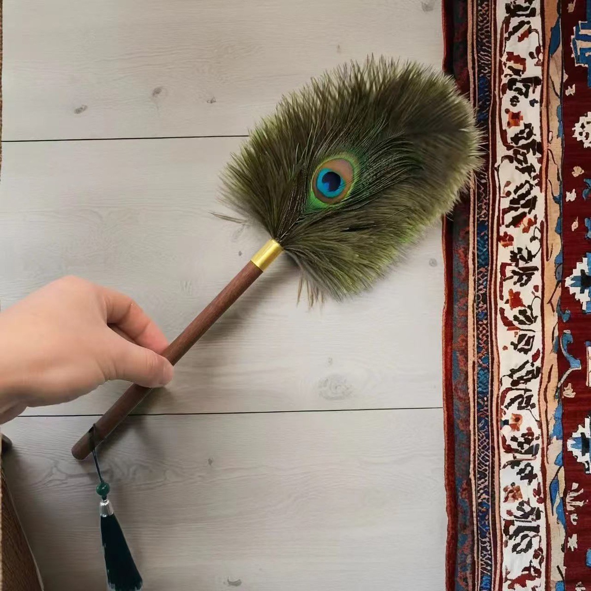 공작 타조 먼지떨이, 고급 깃털 먼지떨이, 복고풍 정전기 방지 가정용 암호화 청소 및 먼지 제거 도구