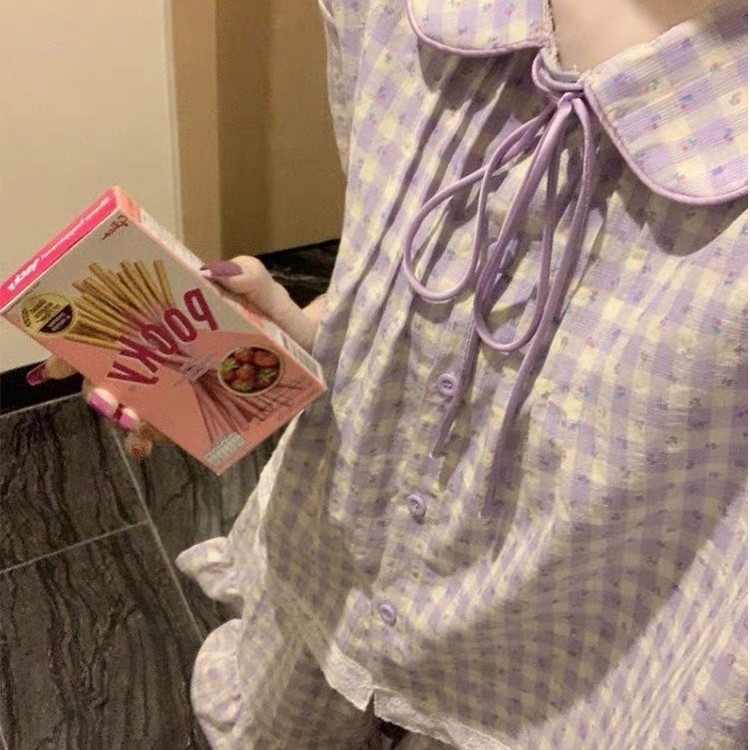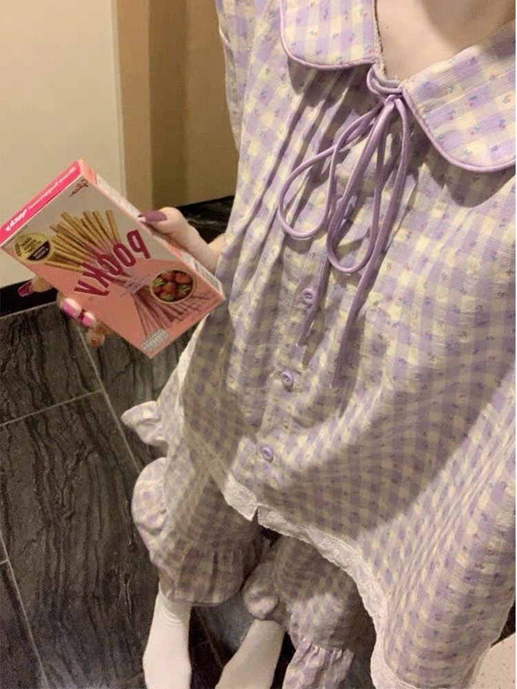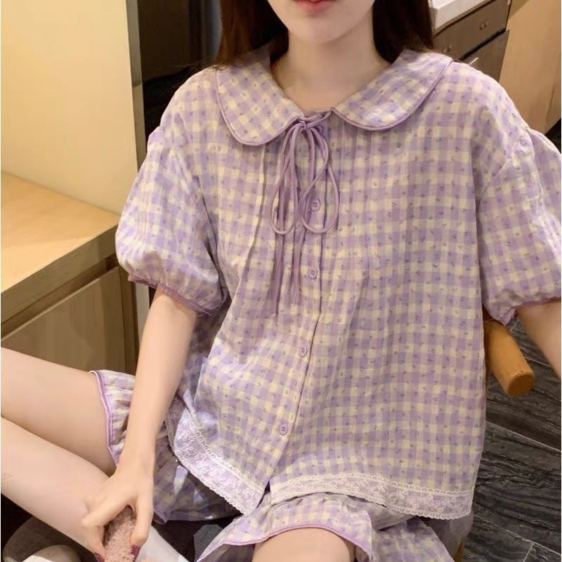 여성을 위한 여름 신작 인스 스타일 잠옷, 달콤하고 귀여운 잠옷, 반팔 반바지, 가디건, 여성이 밖에서 입을 수 있는 홈웨어스토어 가기