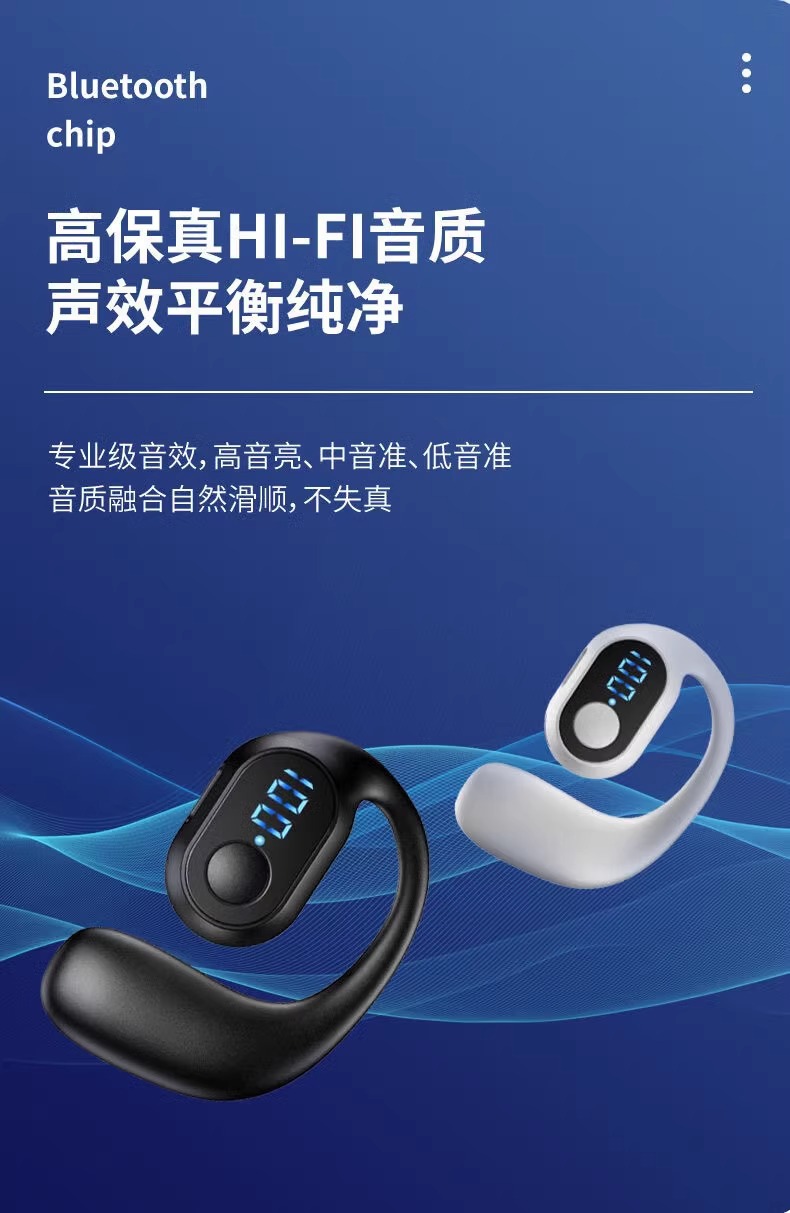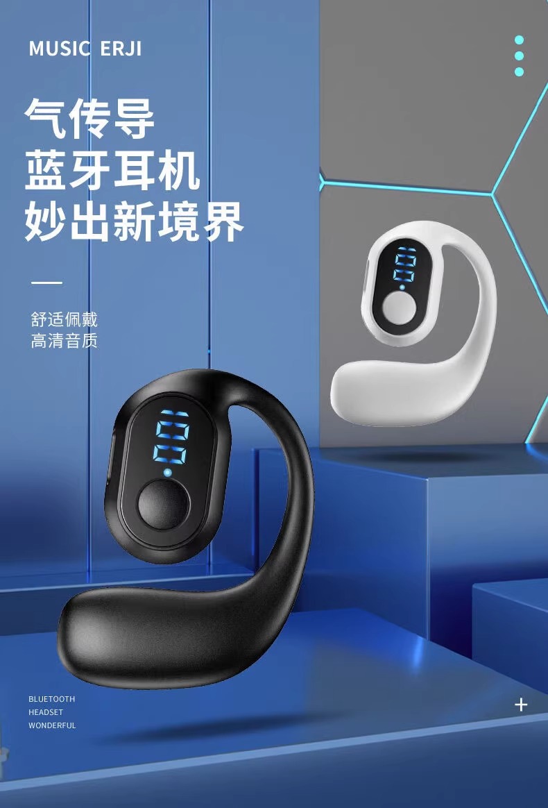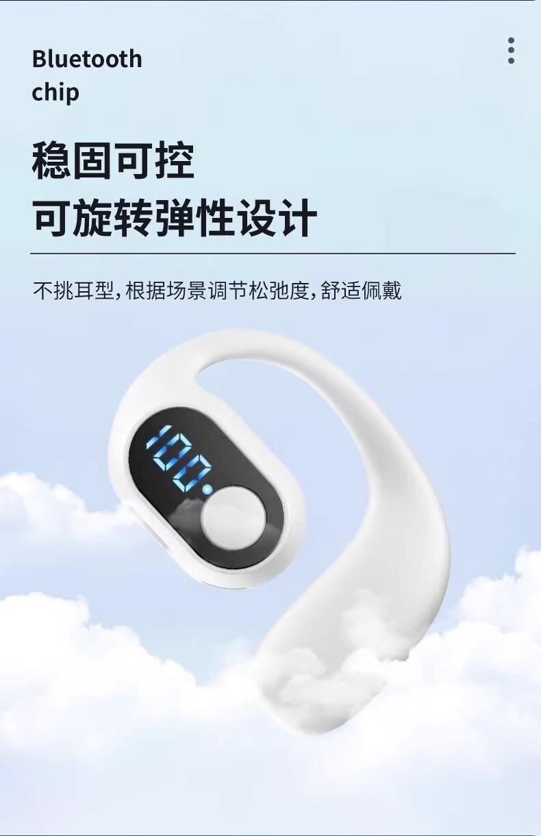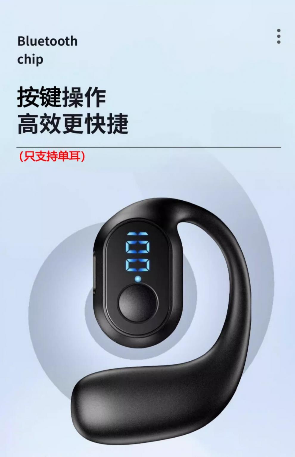 디지털 디스플레이가 장착된 싱글 이어훅 블루투스 헤드셋, 매우 긴 배터리 수명 버튼 버전 OWS 비인이어 전도 스포츠 무선 헤드셋