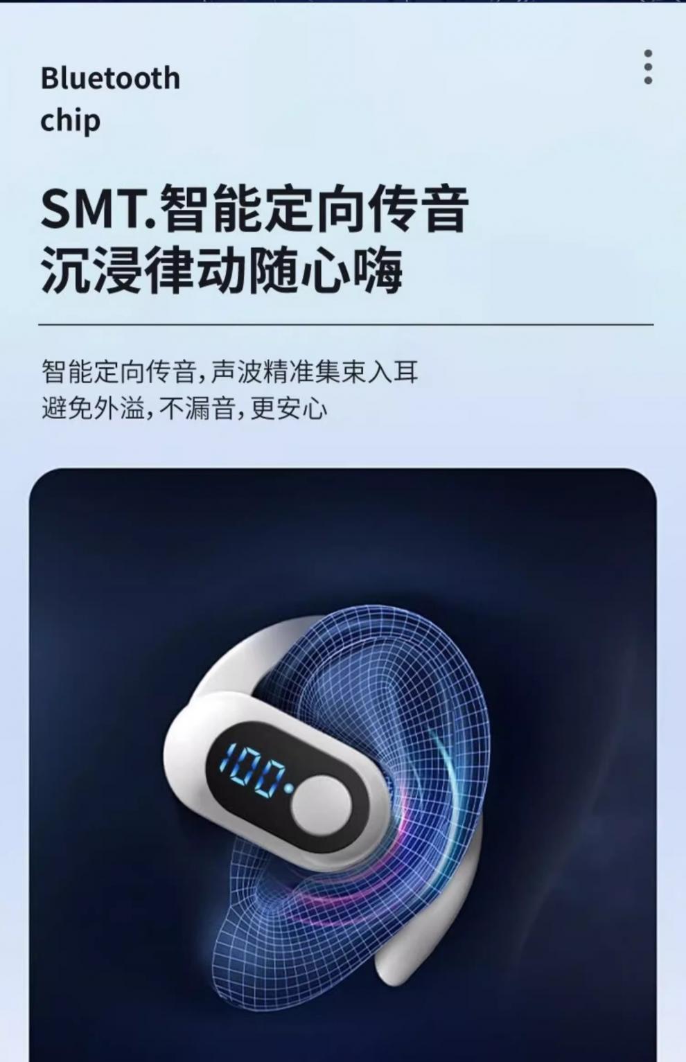 디지털 디스플레이가 장착된 싱글 이어훅 블루투스 헤드셋, 매우 긴 배터리 수명 버튼 버전 OWS 비인이어 전도 스포츠 무선 헤드셋스토어 가기
