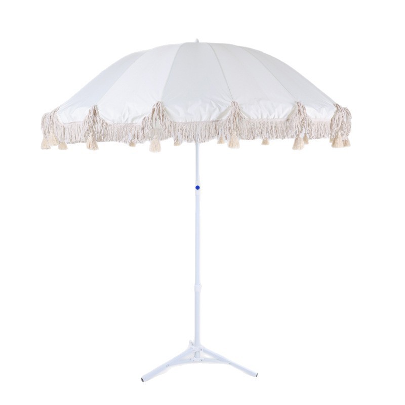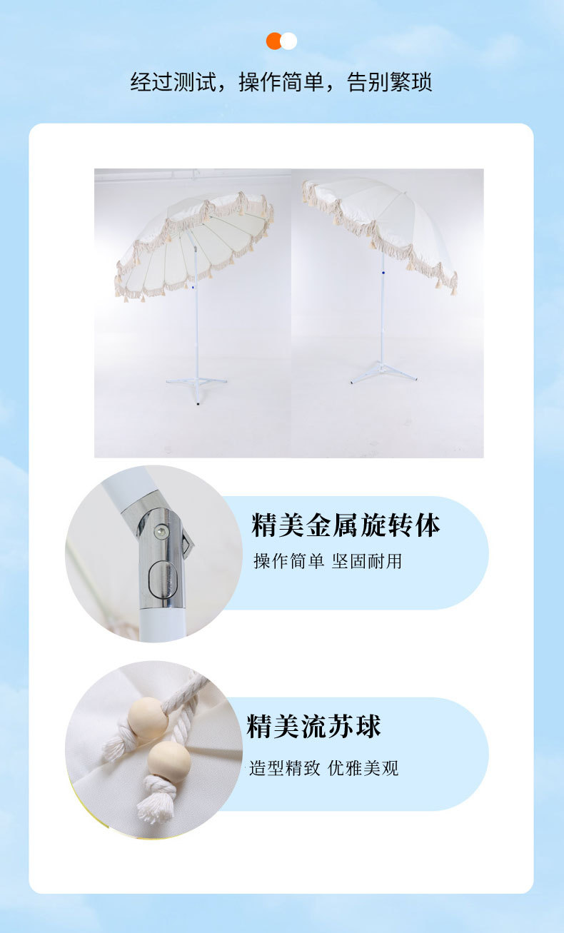 절묘한 태슬 볼이 있는 16본의 야외용 차양 정원 안뜰 우산, 해변 레저용 회전식 태슬 우산