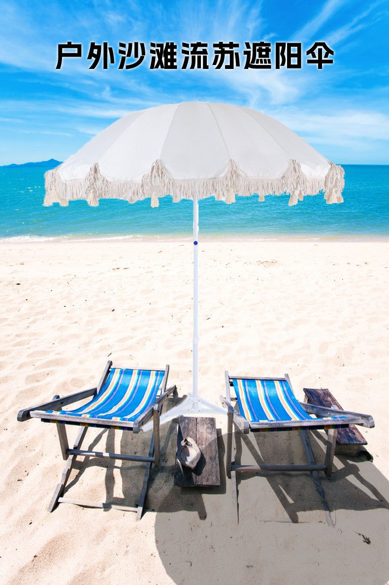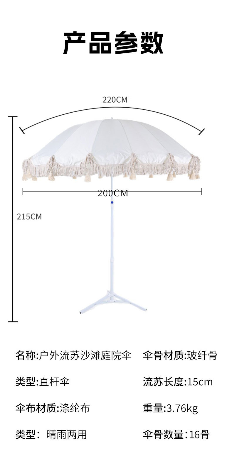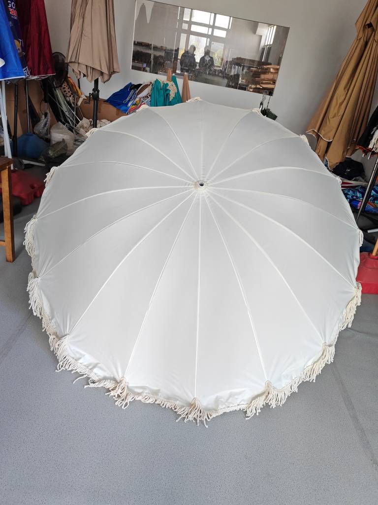 절묘한 태슬 볼이 있는 16본의 야외용 차양 정원 안뜰 우산, 해변 레저용 회전식 태슬 우산스토어 가기