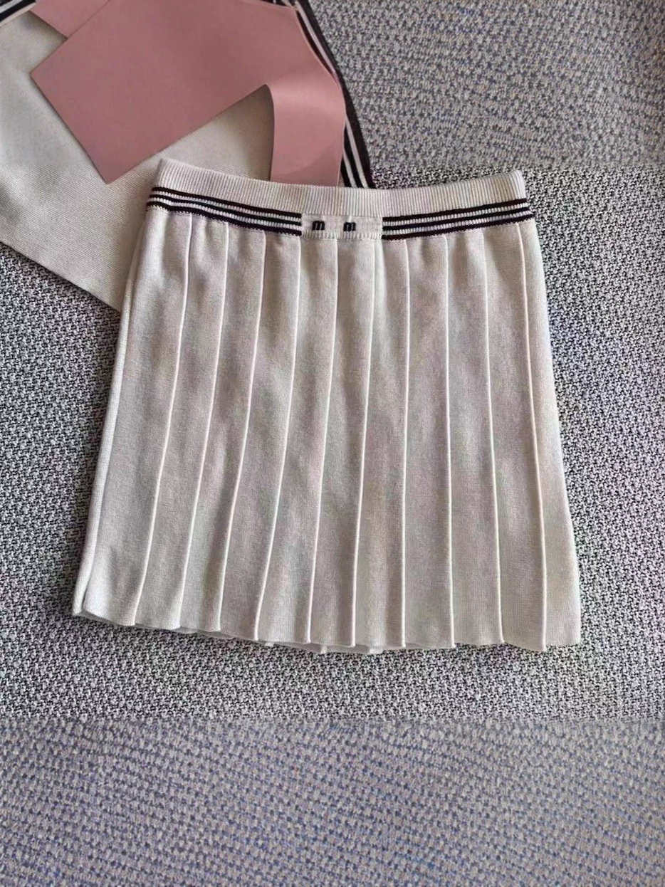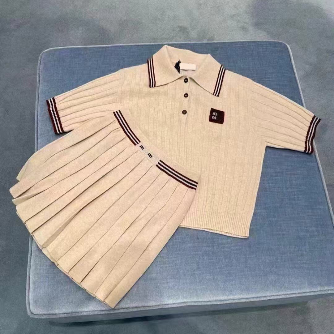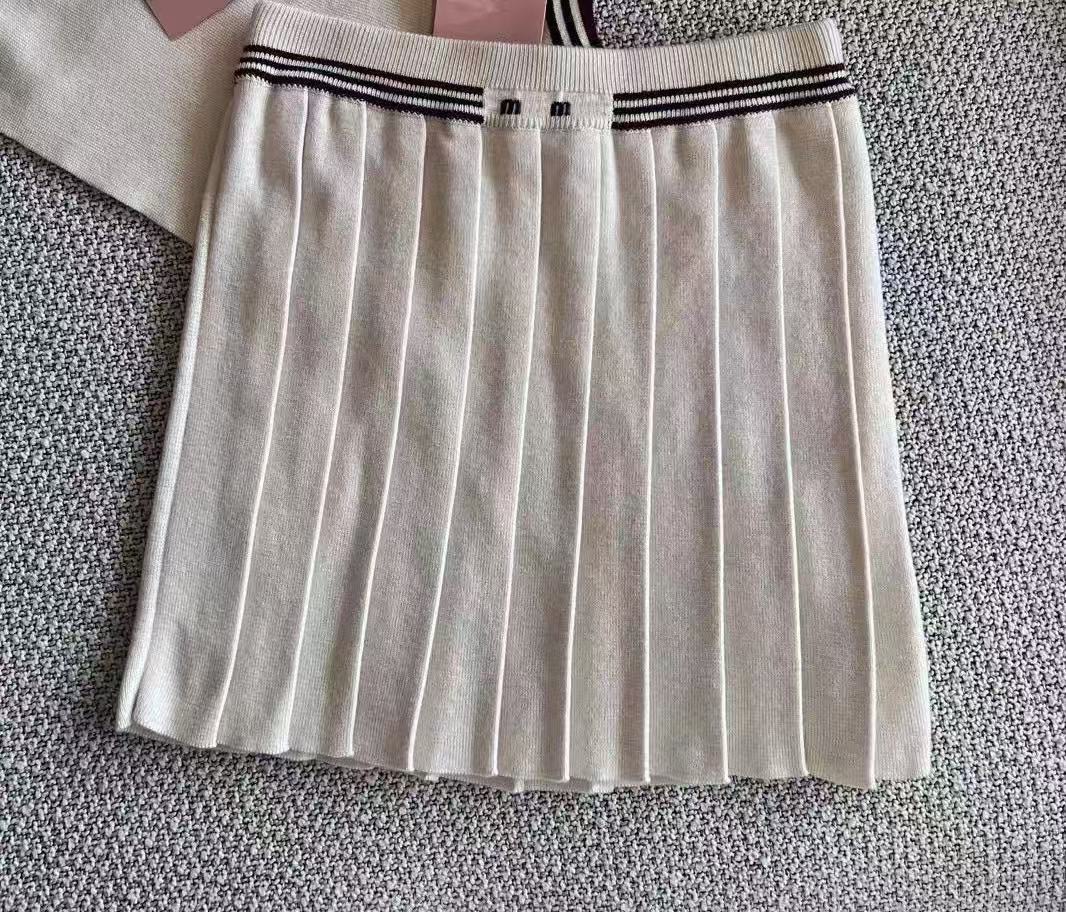 Nanyou Mjia 25 여성용 새 스타일 대학 스타일 대비 색 줄무늬 스웨터 + 조끼 스웨터 스커트 정장 여성용