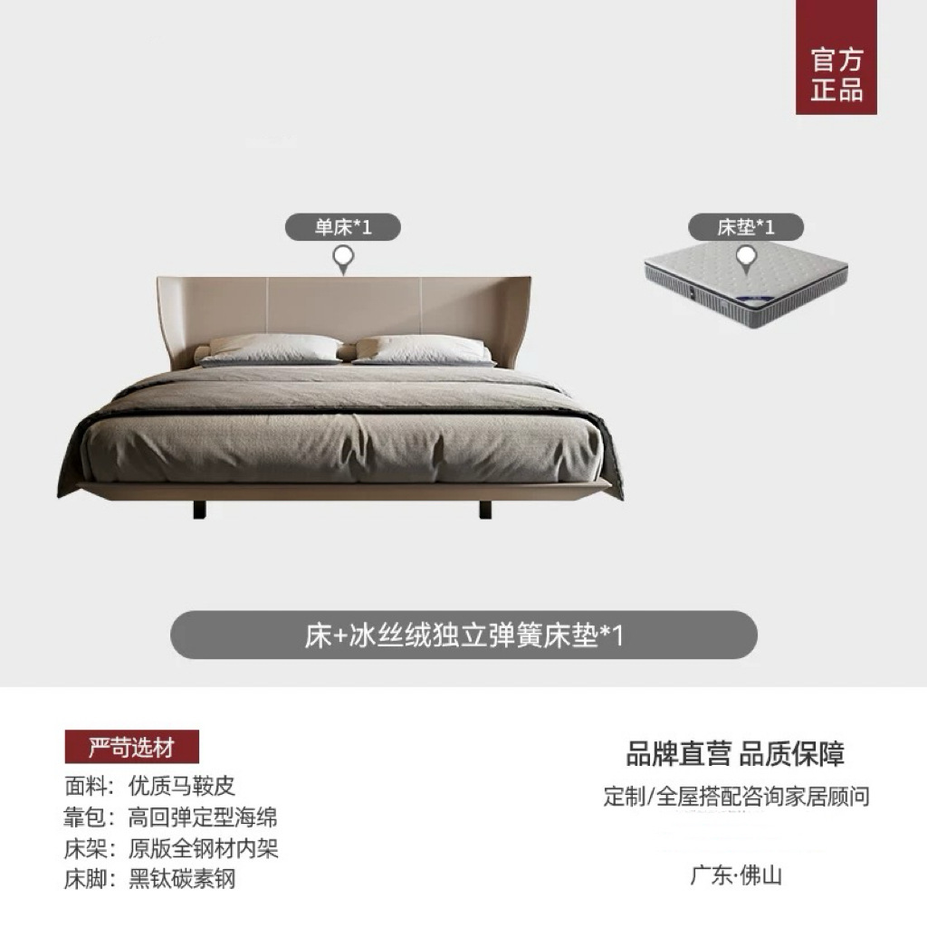 • [두꺼운 안장가죽 + 올스틸 침대 프레임] 싱글 침대 + 아이스벨벳 독립 스프링 매트리스*1