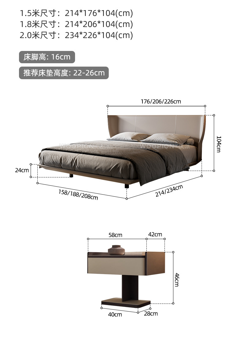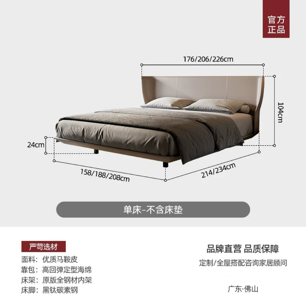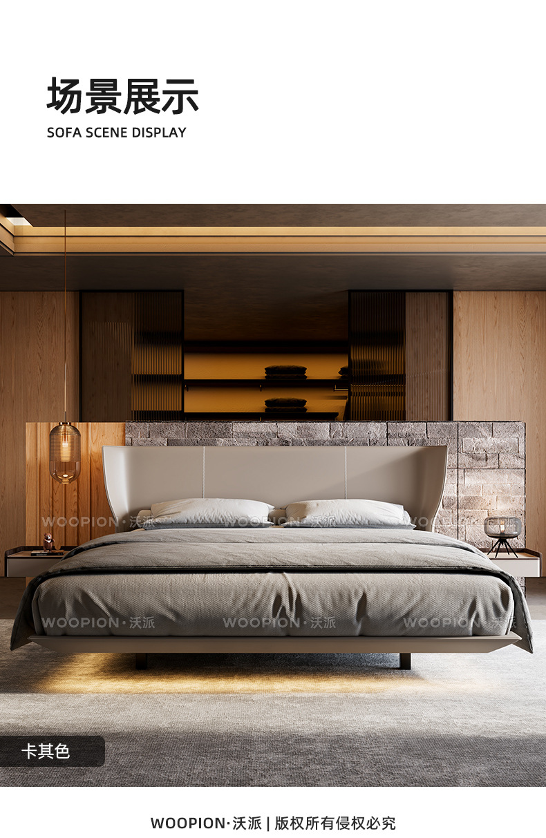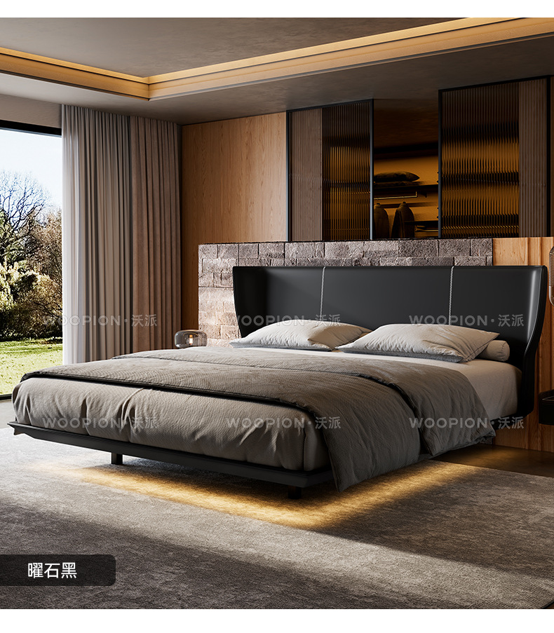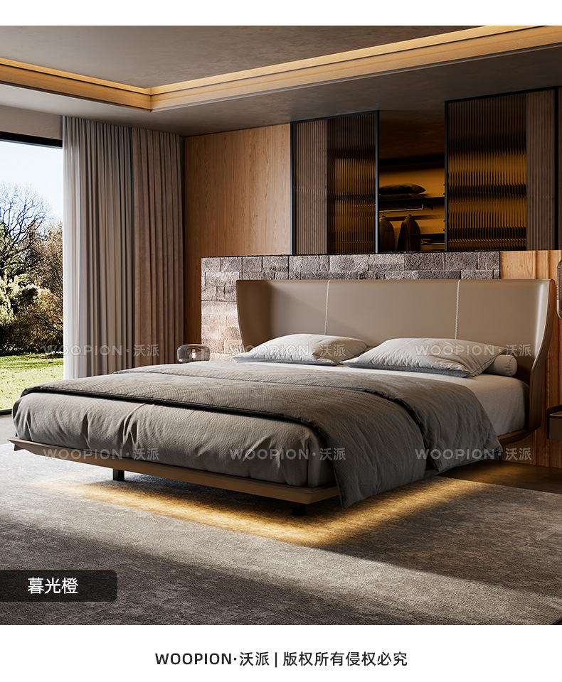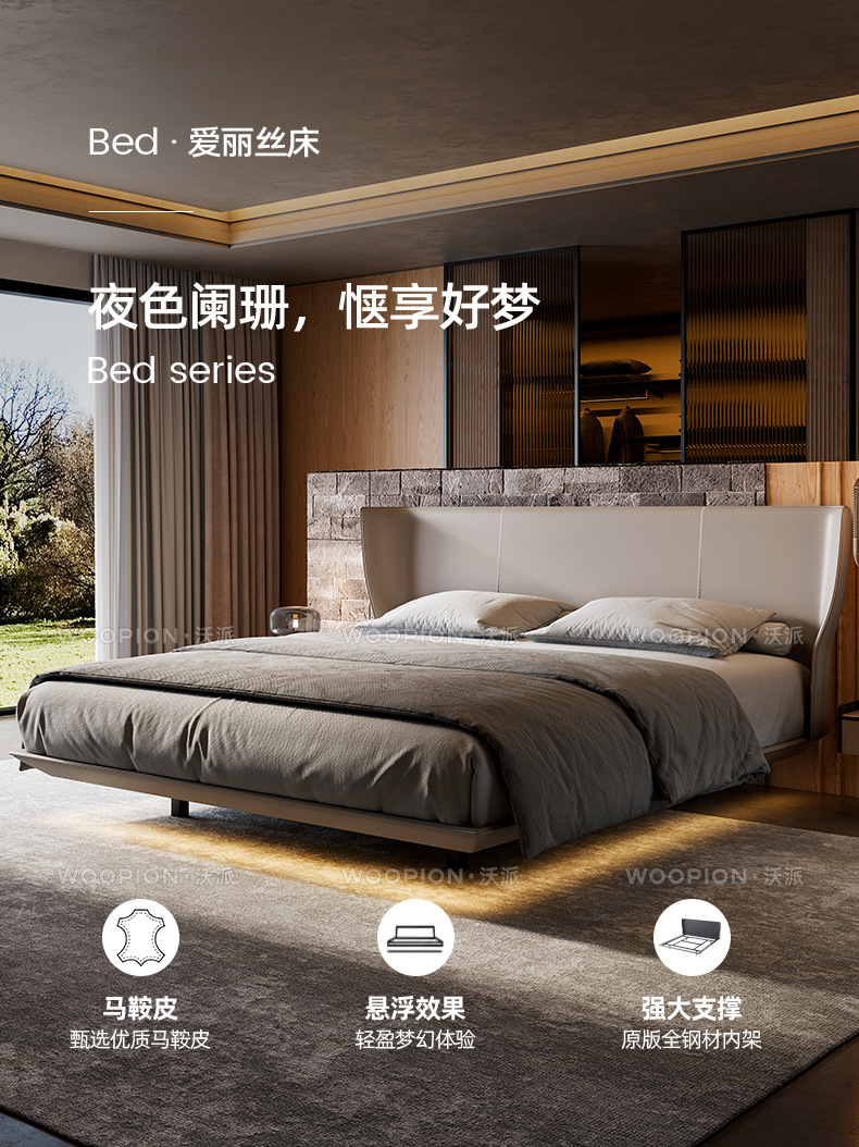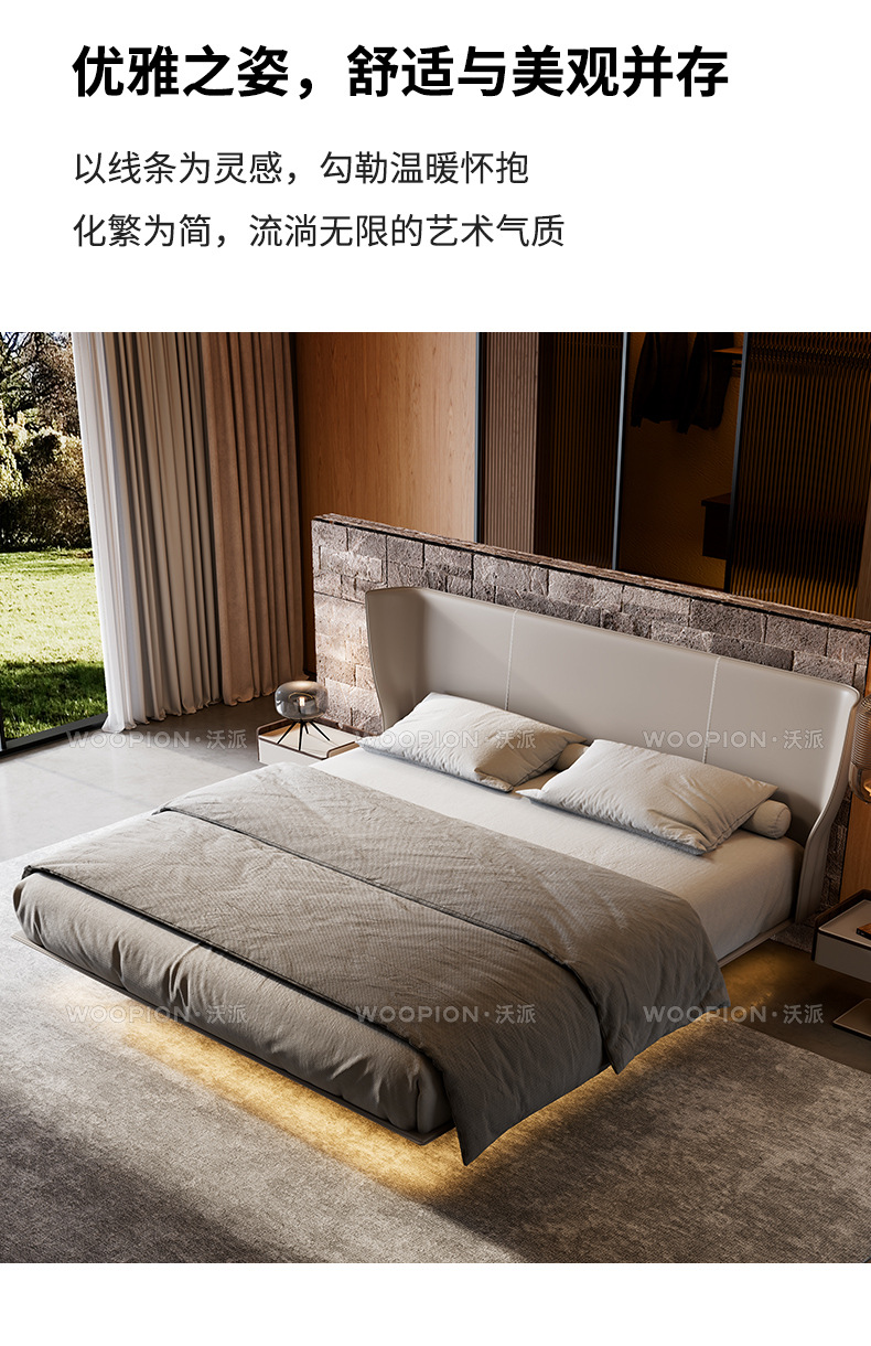 이탈리아 미니멀리스트 Alys 서스펜션 침대 마스터 침실 하이 엔드 웨딩 침대 더블 인터넷 연예인 얇은 침대 옆 안장 가죽 대형 침대스토어 가기