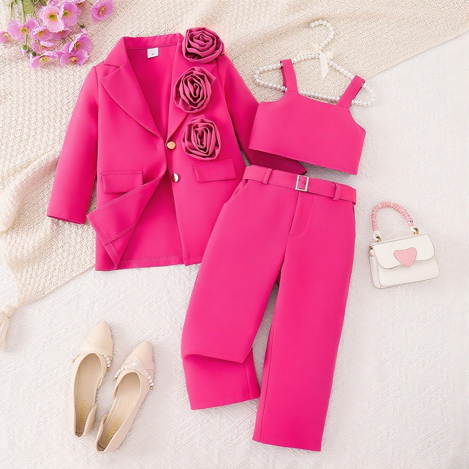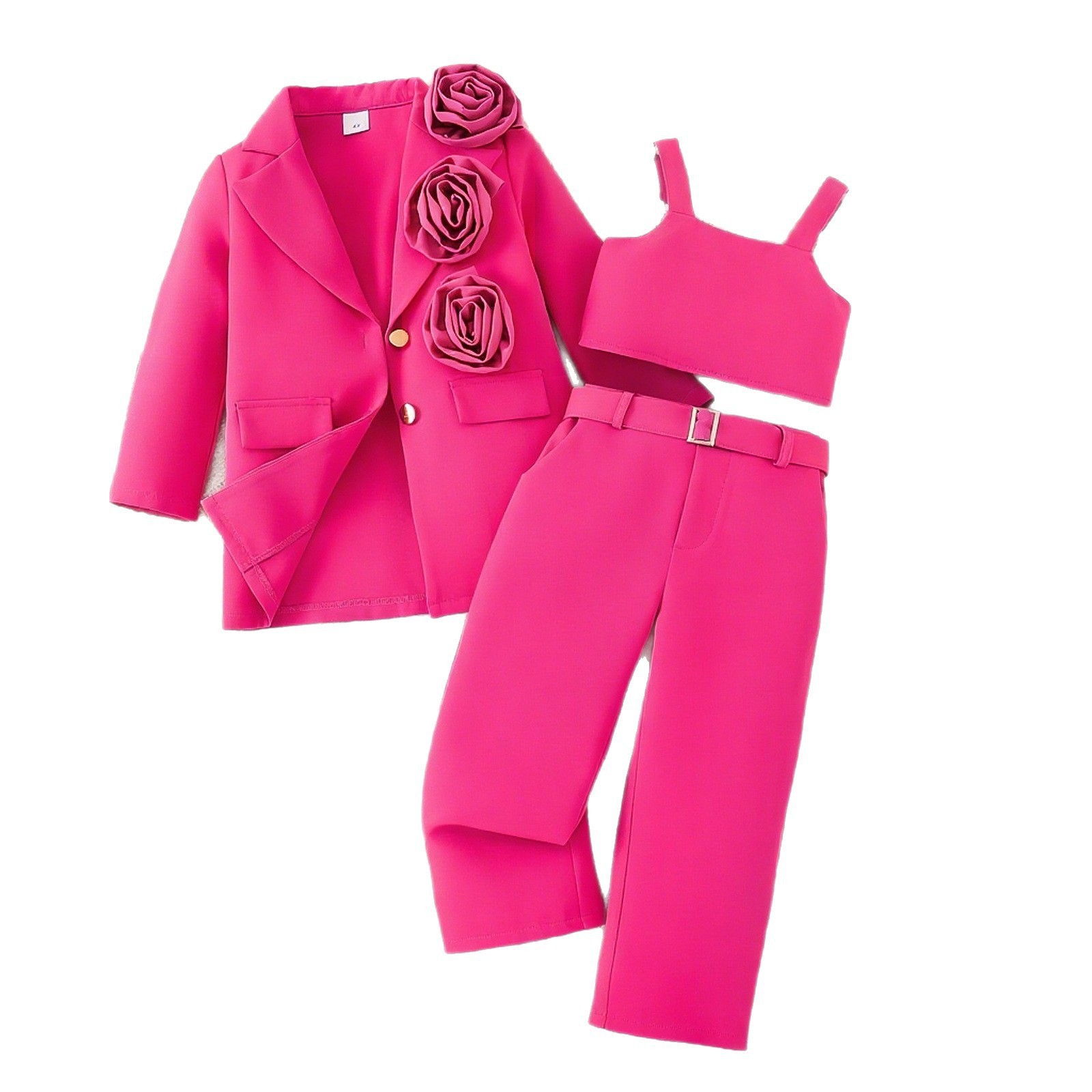 국경을 넘나드는 유럽과 미국의 봄과 가을 새로운 스타일의 소녀 정장, 어린이 서스펜더 이너웨어 + 긴팔 꽃 재킷 + 바지