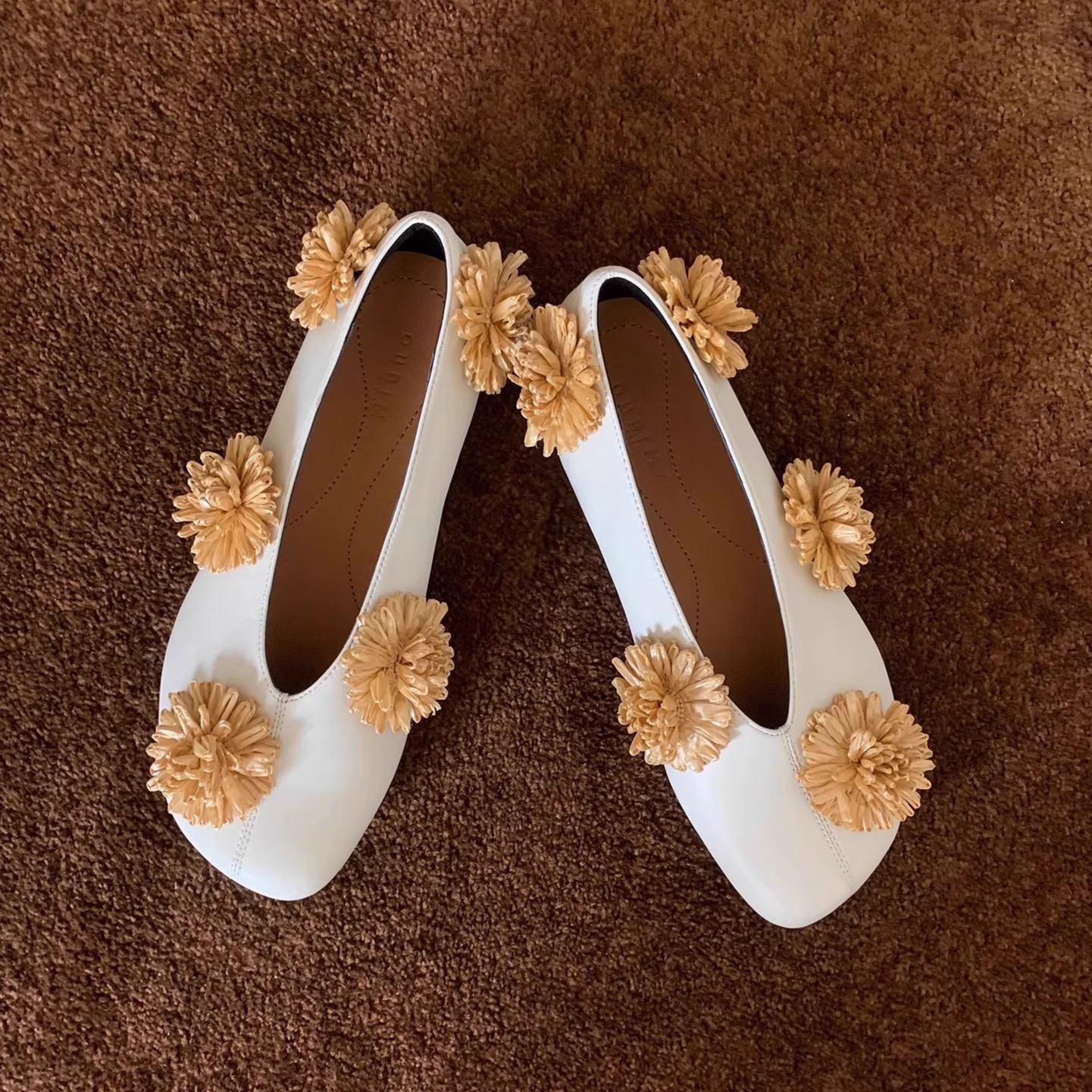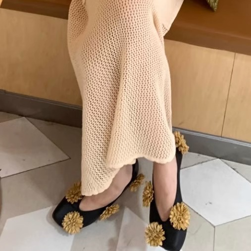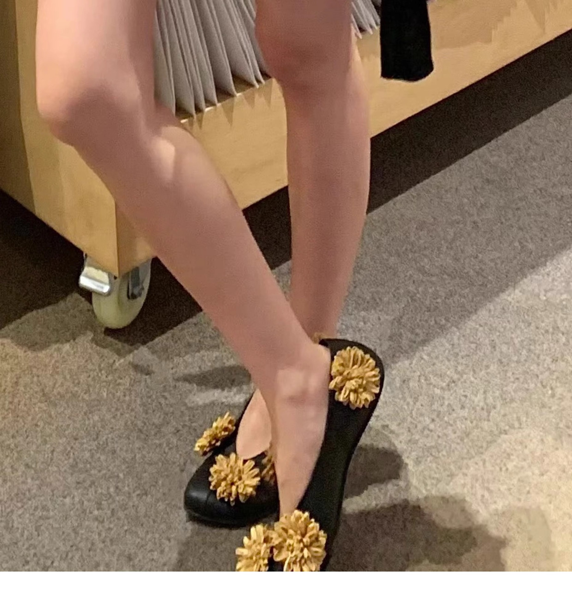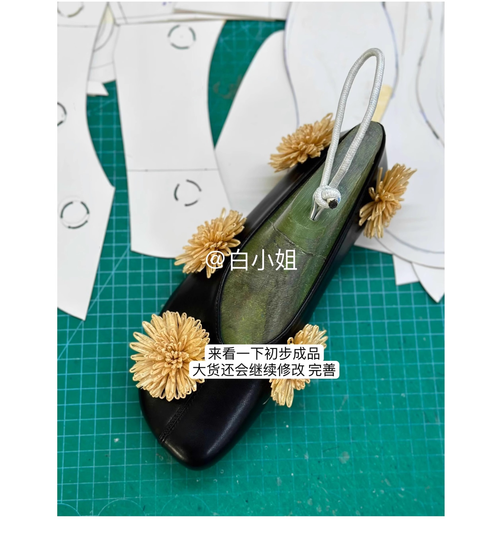 유럽과 미국의 2025년 신상품, 같은 스타일의 틈새 디자인 꽃무늬 플랫슈즈, 여성용 펌프스 플랫슈즈, 할머니 신발스토어 가기