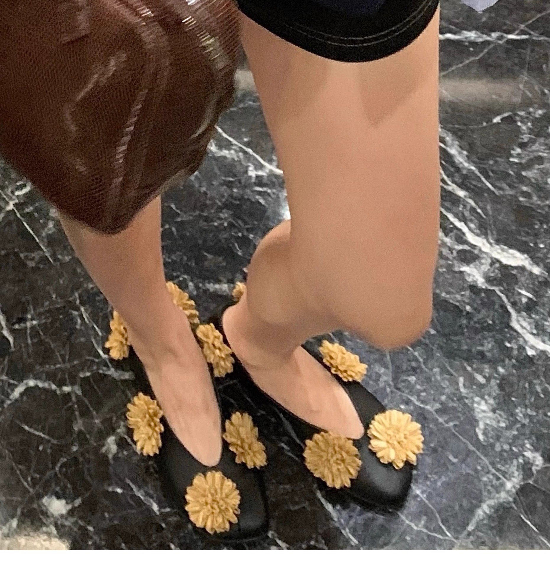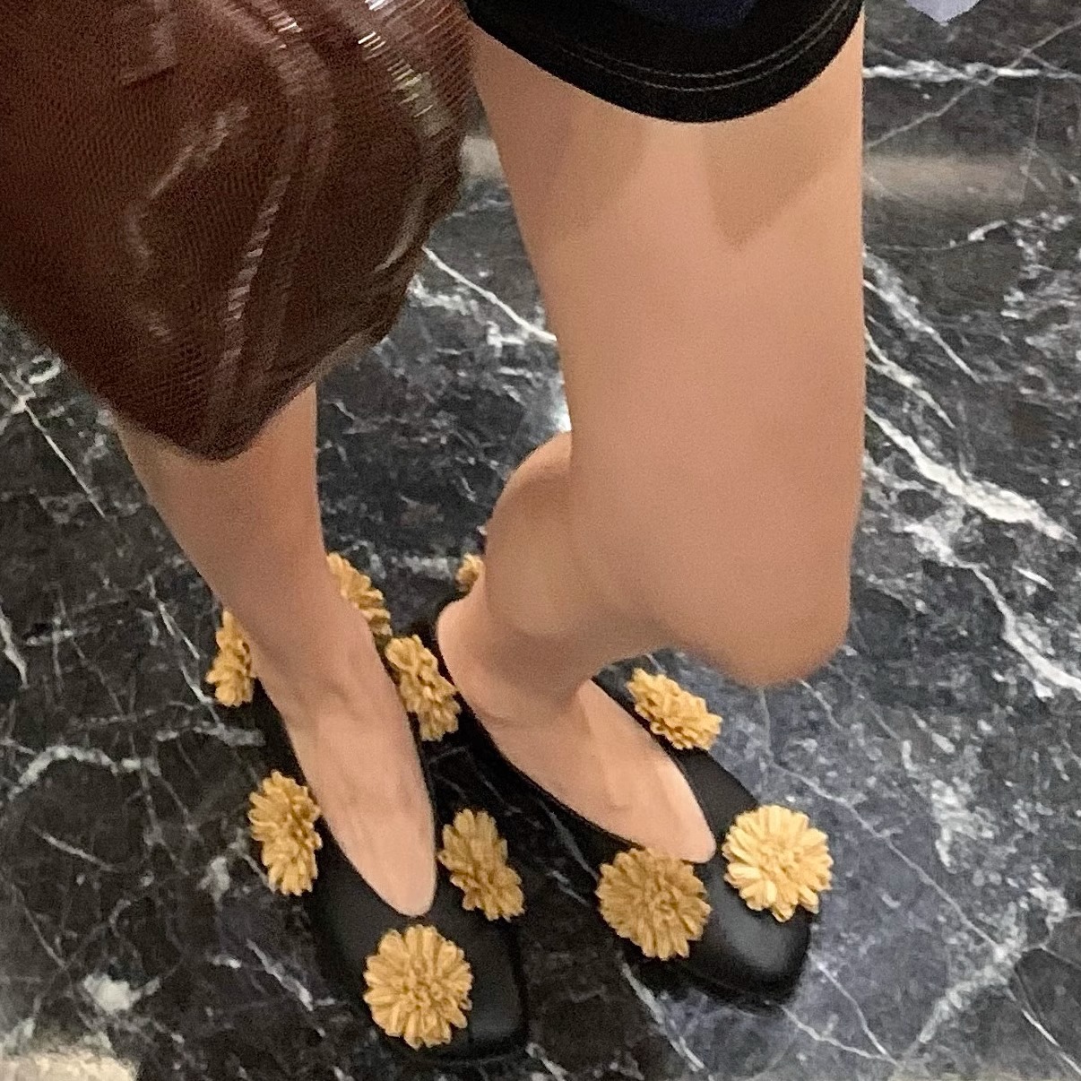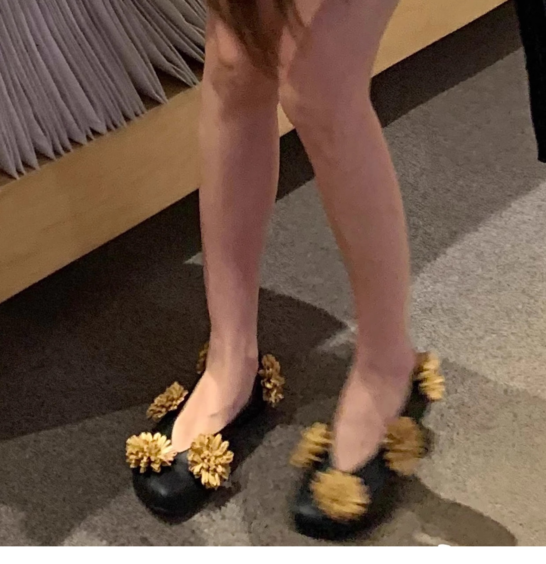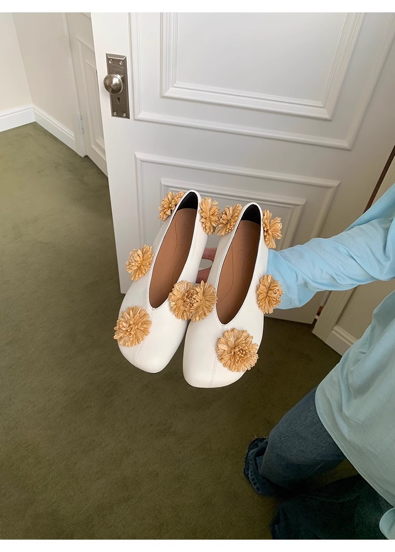 유럽과 미국의 2025년 신상품, 같은 스타일의 틈새 디자인 꽃무늬 플랫슈즈, 여성용 펌프스 플랫슈즈, 할머니 신발스토어 가기