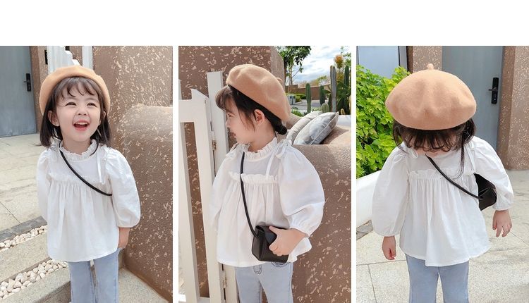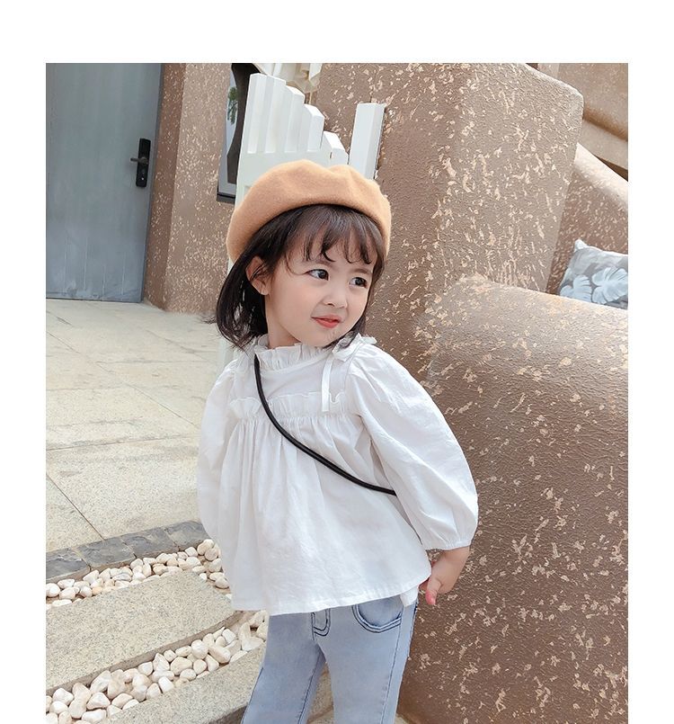 아동복 가을 새로운 한국 스타일 소녀 흰색 셔츠 아기 인형 셔츠 아동 봄 긴팔 유행상의스토어 가기