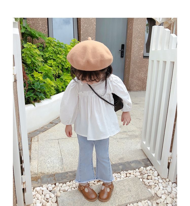 아동복 가을 새로운 한국 스타일 소녀 흰색 셔츠 아기 인형 셔츠 아동 봄 긴팔 유행상의