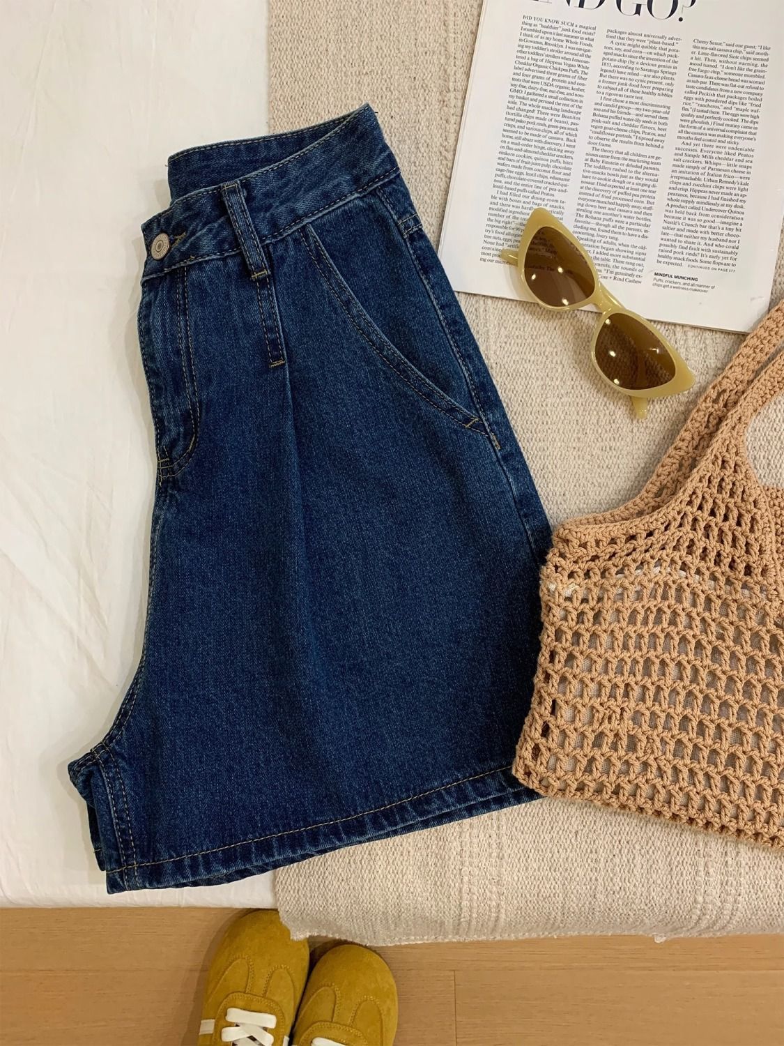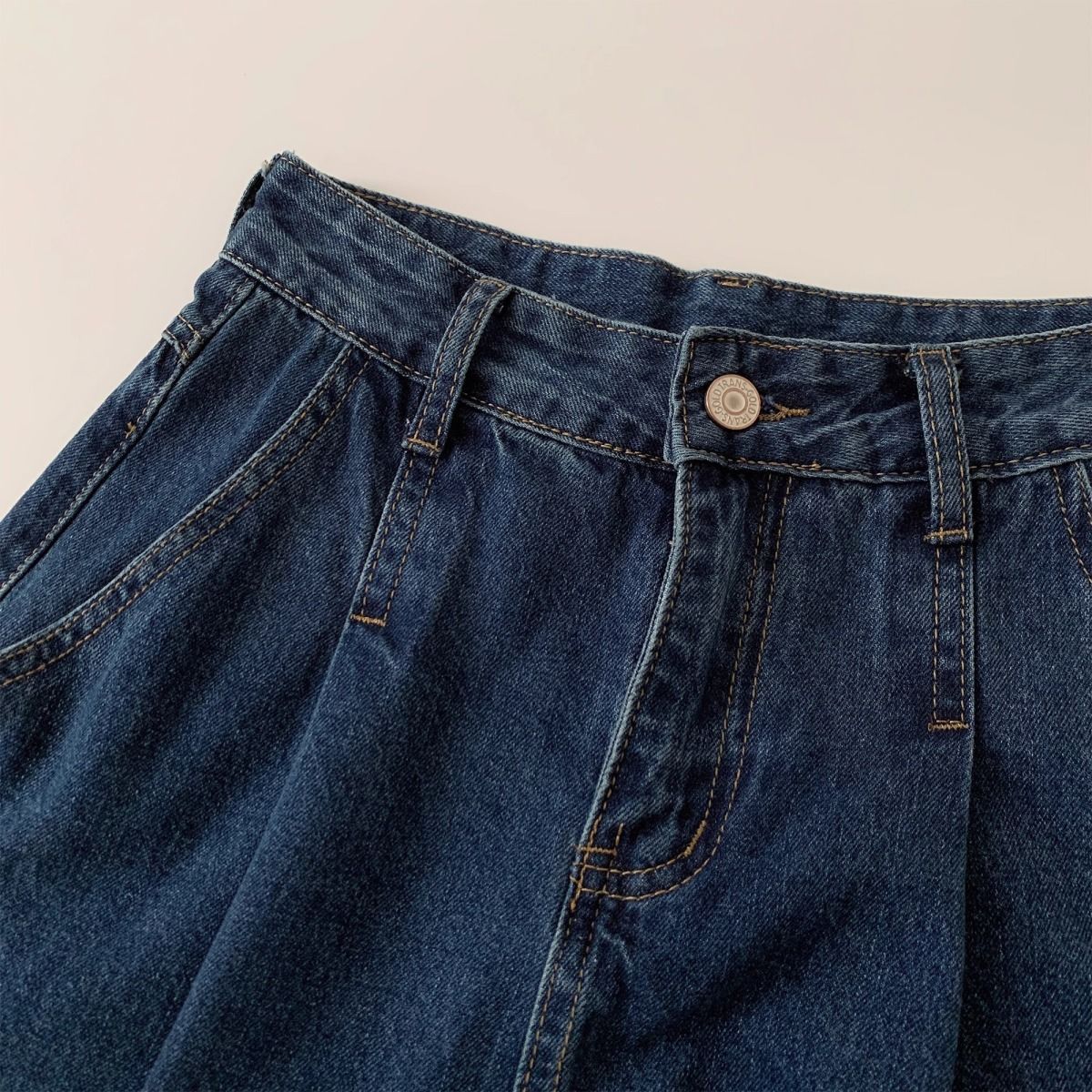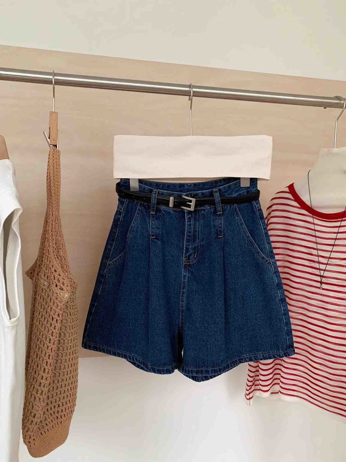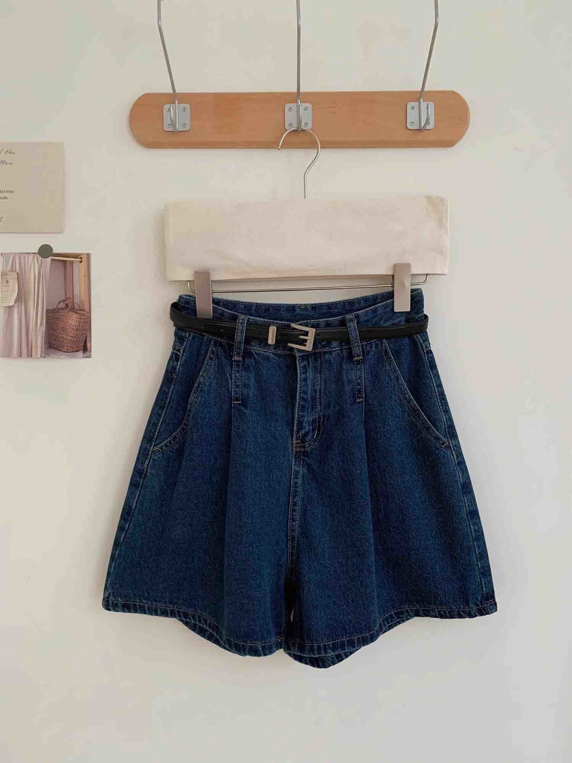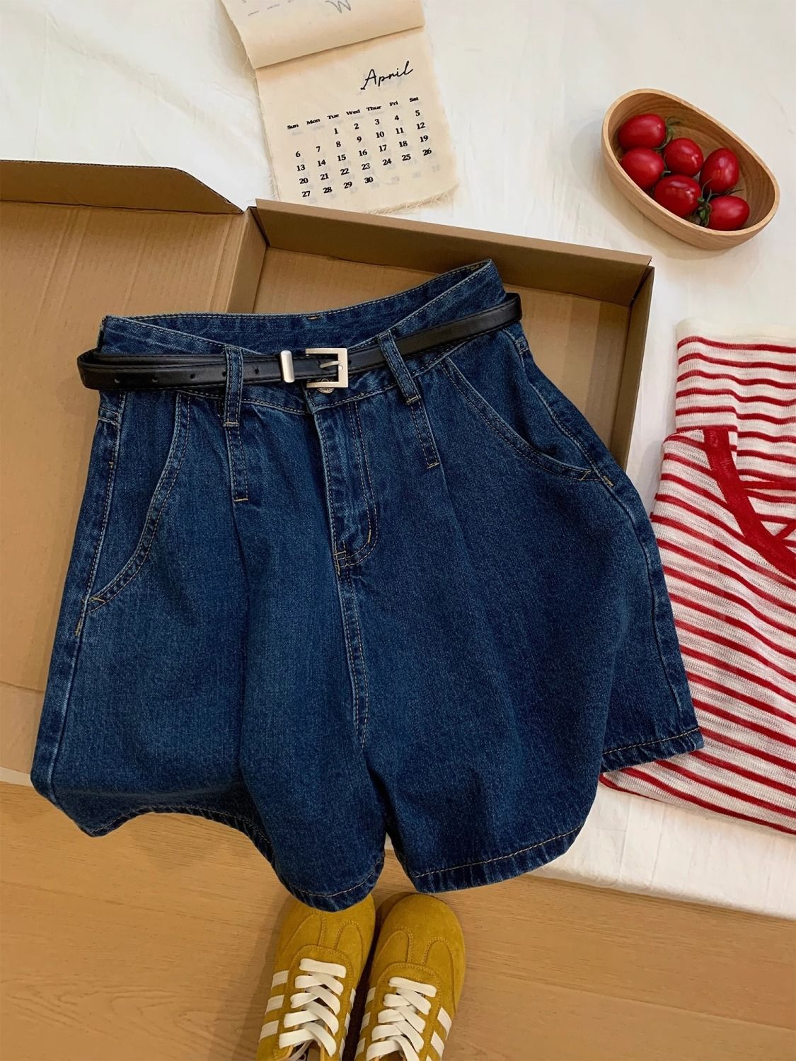 여성을위한 진한 파란색 주름 데님 반바지 2025 여름 새로운 스타일 하이 웨이스트 루즈 슬림 캐주얼 a 라인 다목적 핫 팬츠스토어 가기