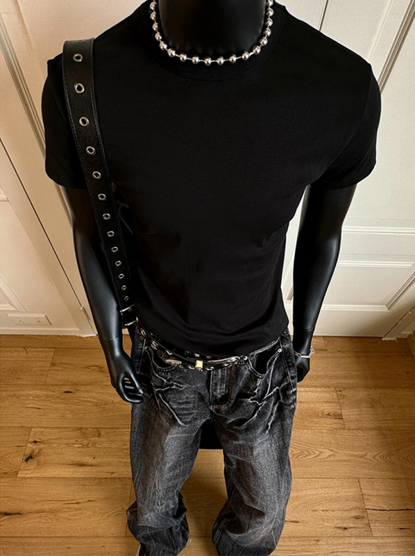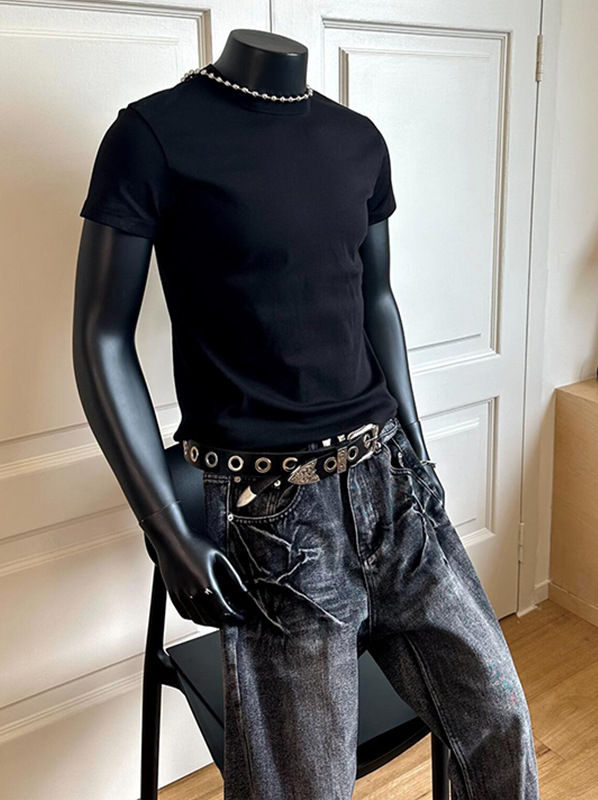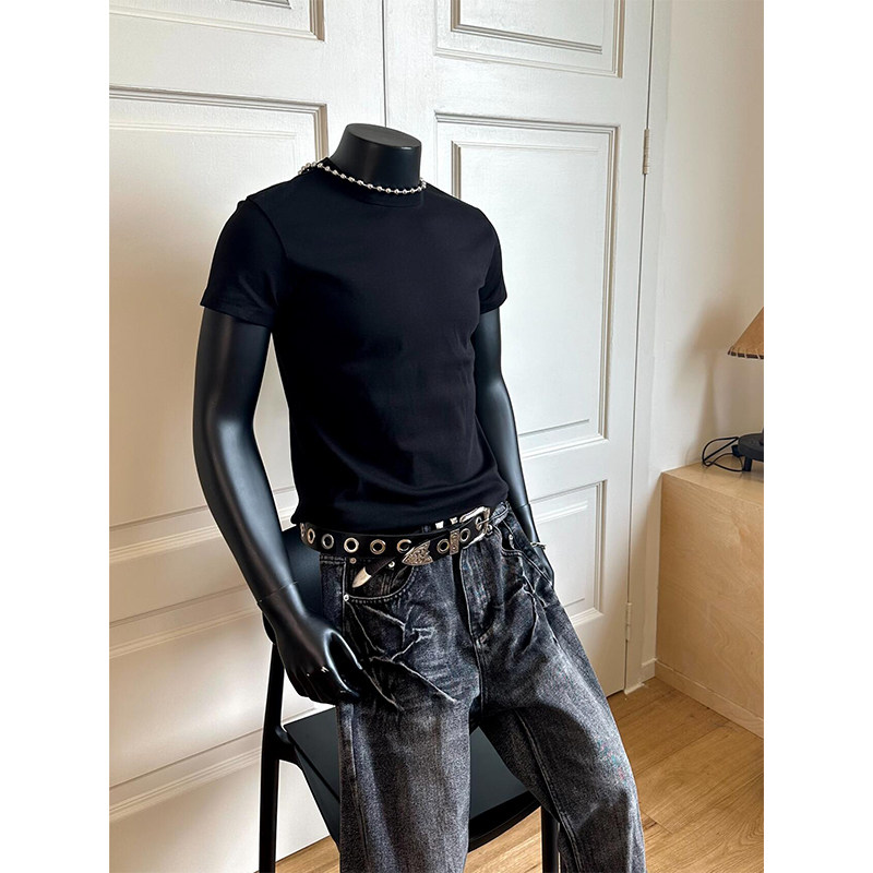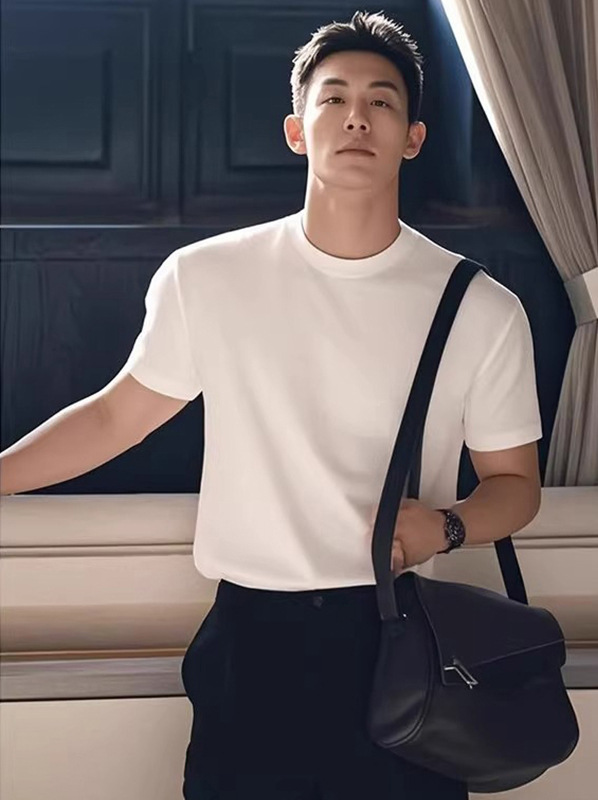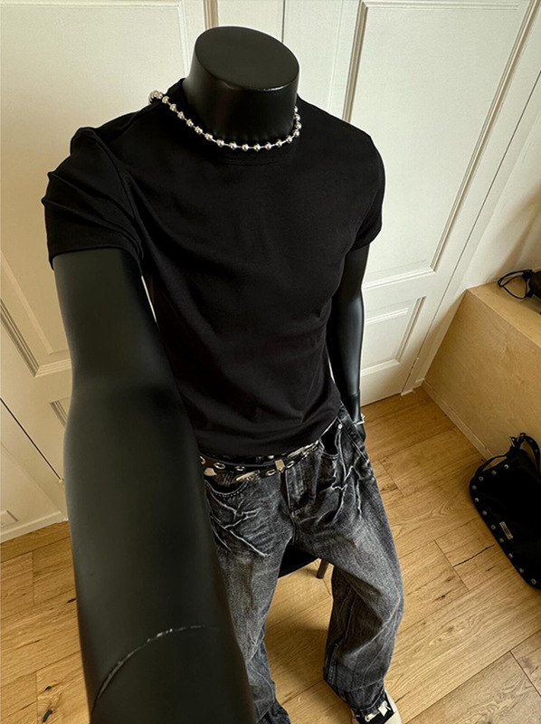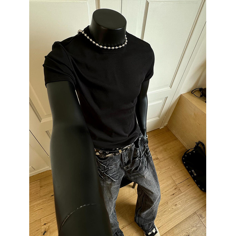 280G 헤비급 솔리드 컬러 오른쪽 어깨 반팔 티셔츠 남성 슬림 여름 Solona American cleanfit 탑 트렌디스토어 가기