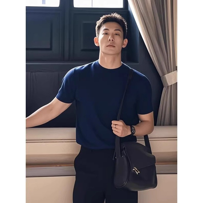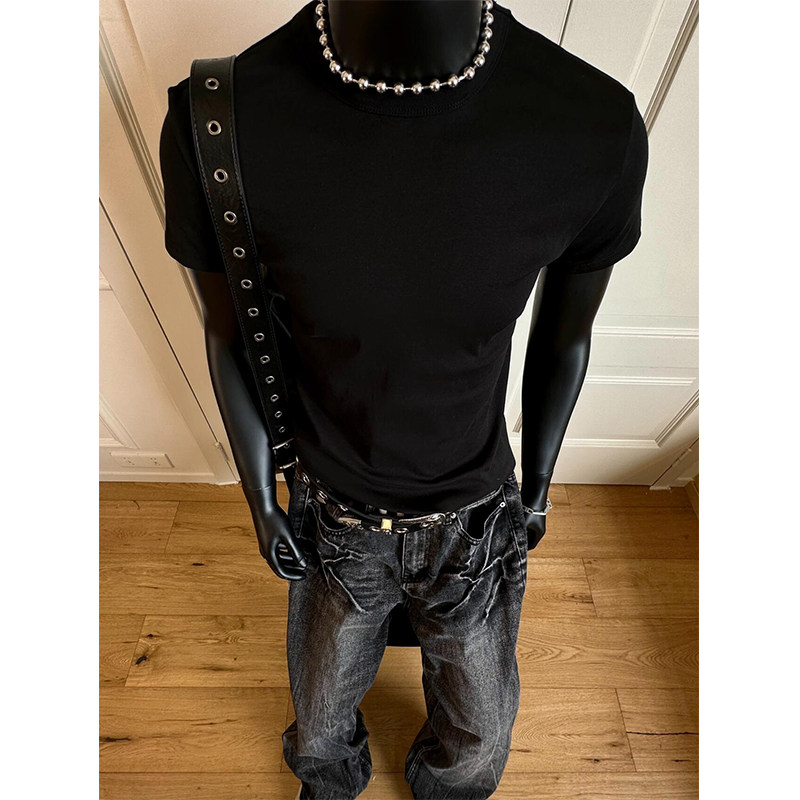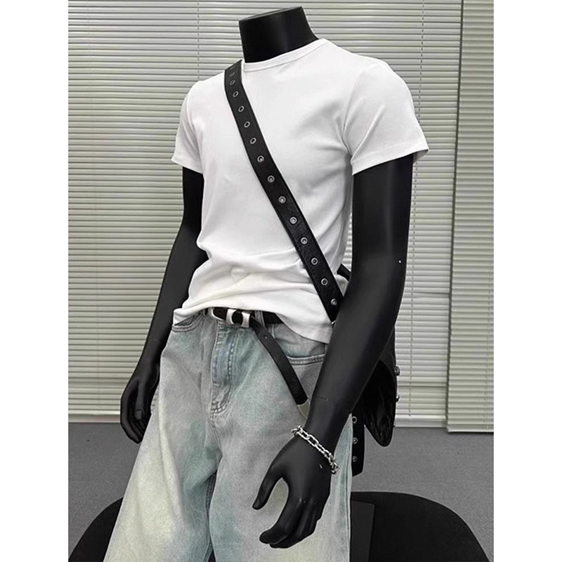 280G 헤비급 솔리드 컬러 오른쪽 어깨 반팔 티셔츠 남성 슬림 여름 Solona American cleanfit 탑 트렌디