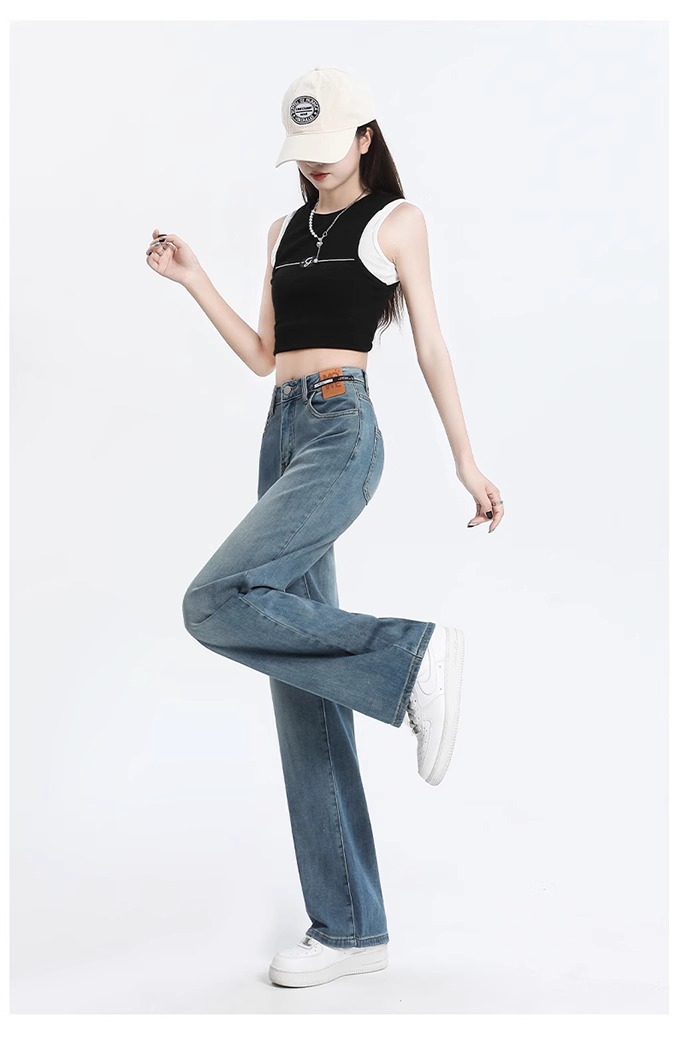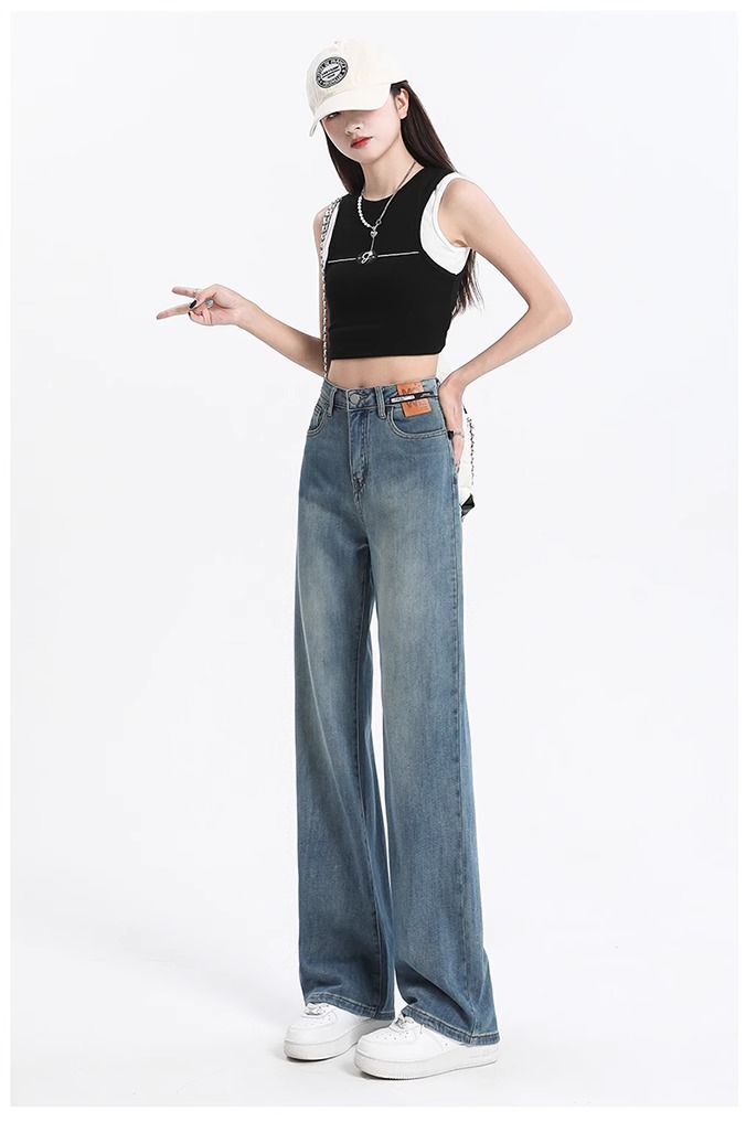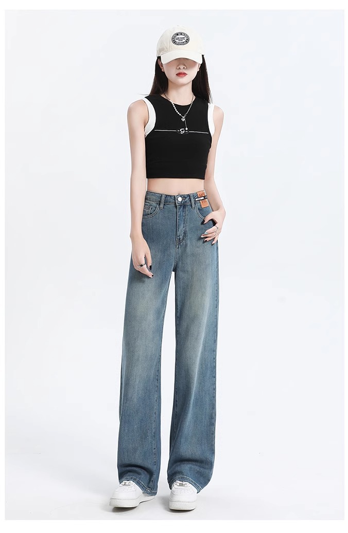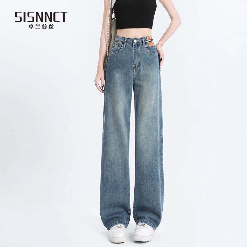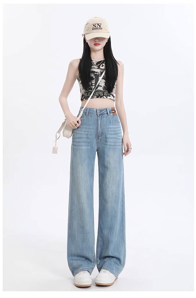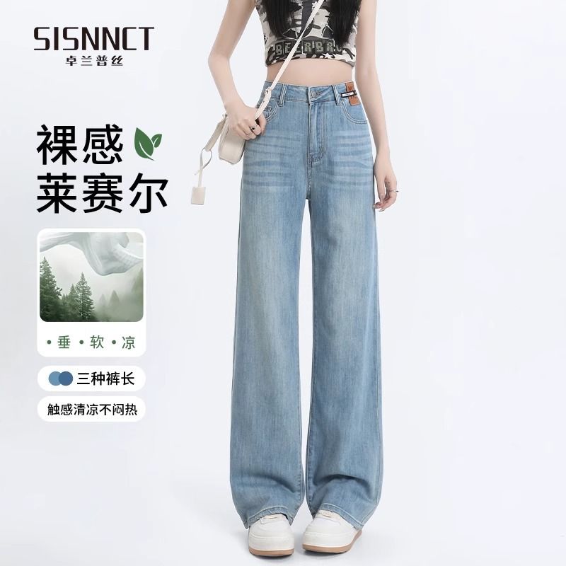 여성용 텐셀 데님 팬츠, 여름용 얇은 모델, 2026년 신상, 라이오셀 하이웨이스트, 슬림핏, 작은 체형을 위한 스트레이트 와이드 팬츠스토어 가기