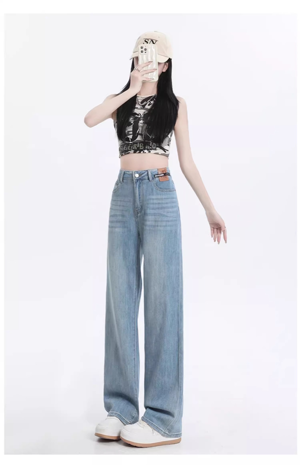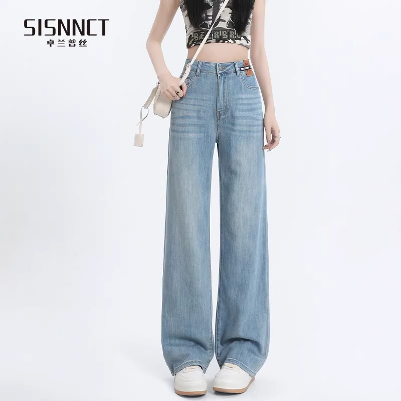 여성용 텐셀 데님 팬츠, 여름용 얇은 모델, 2026년 신상, 라이오셀 하이웨이스트, 슬림핏, 작은 체형을 위한 스트레이트 와이드 팬츠