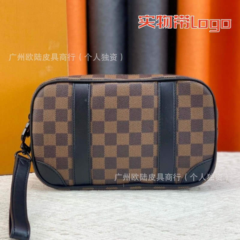 국경 간 공급 새로운 클래식 올드 플라워 체커보드 남성용 클러치 백 로고가 있는 세련되고 다재다능한 정품 가죽 비즈니스 백스토어 가기