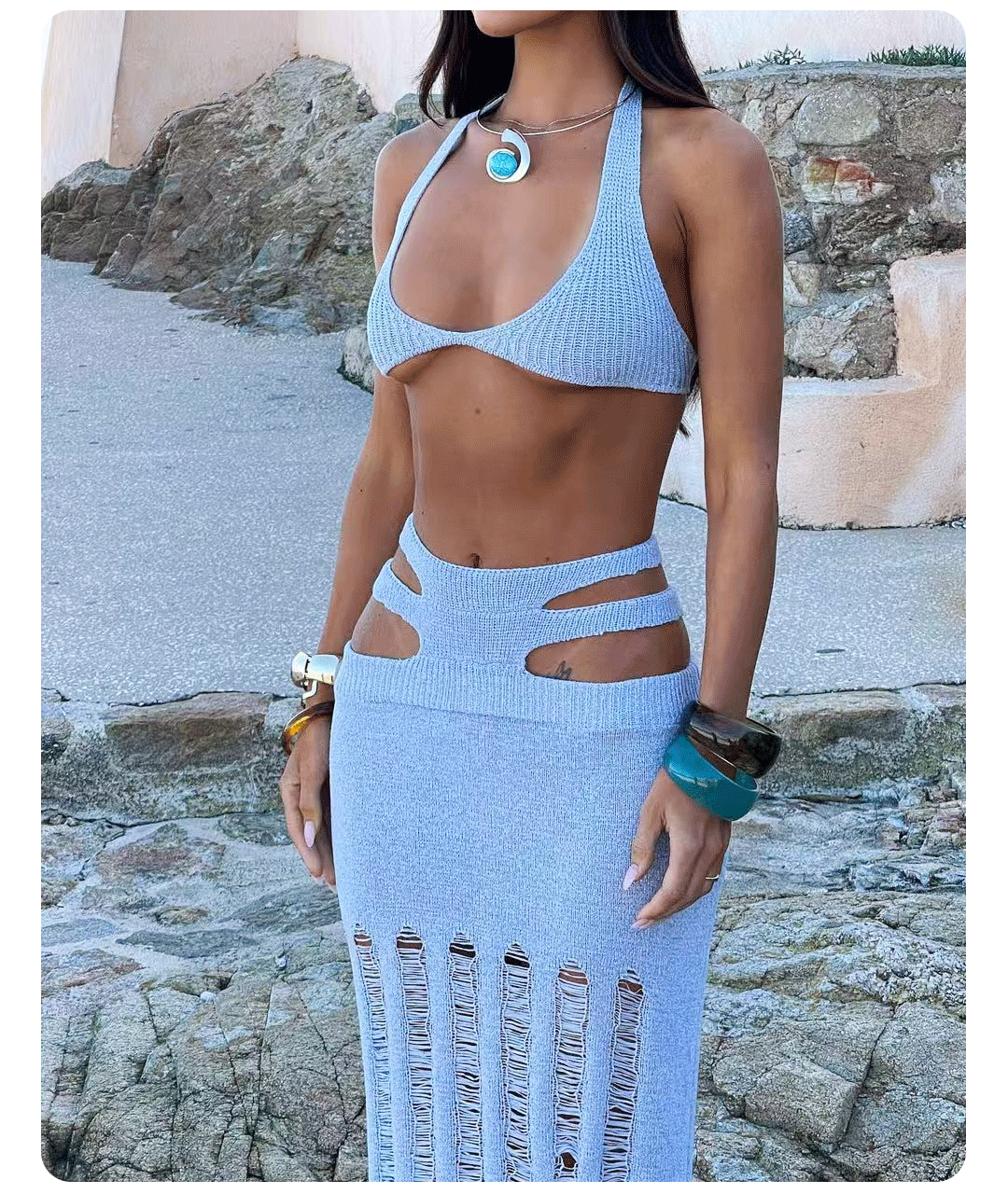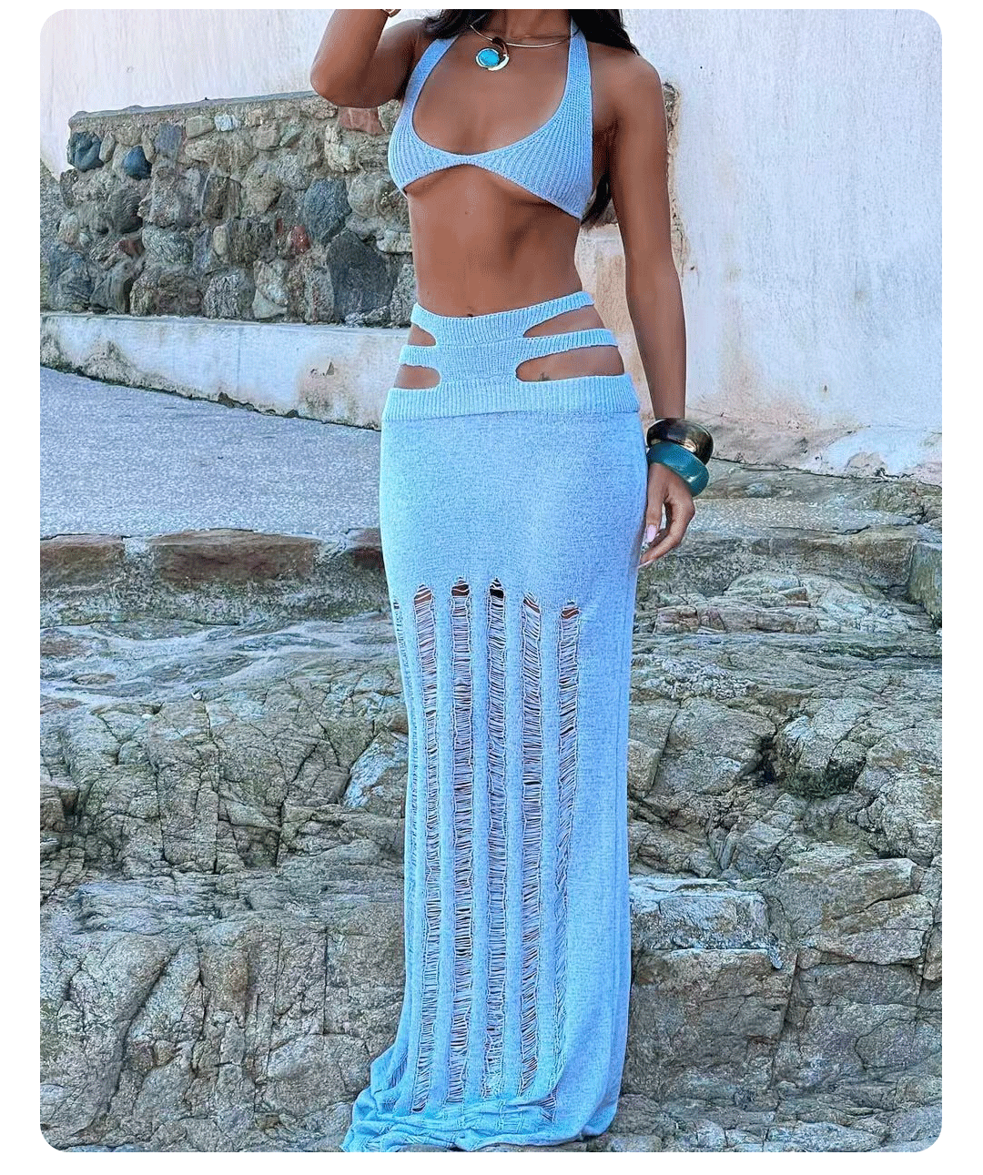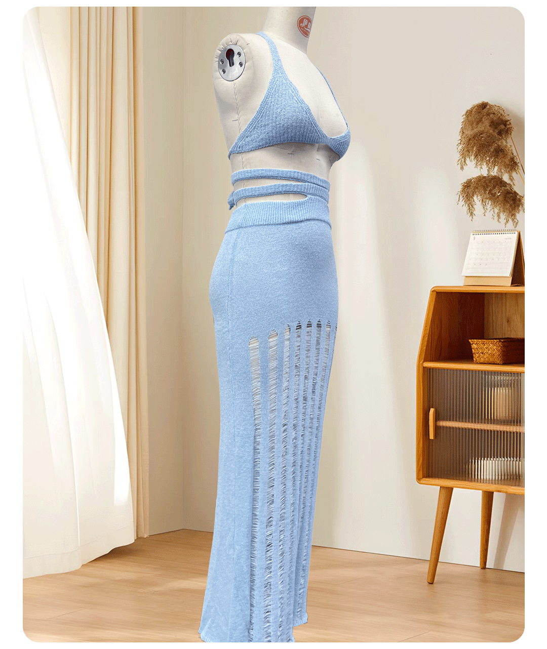 유럽과 미국의 여성 섹시한 비키니 정장 슬림 힙 스커트 비치 스커트 중공 니트 롱 스커트 해변 수영복스토어 가기