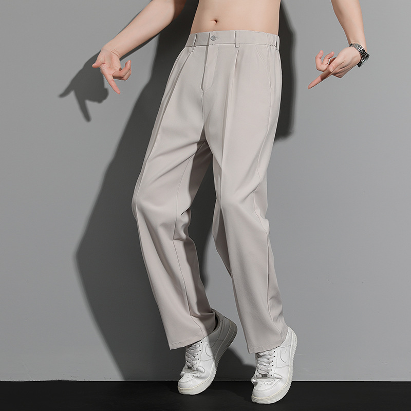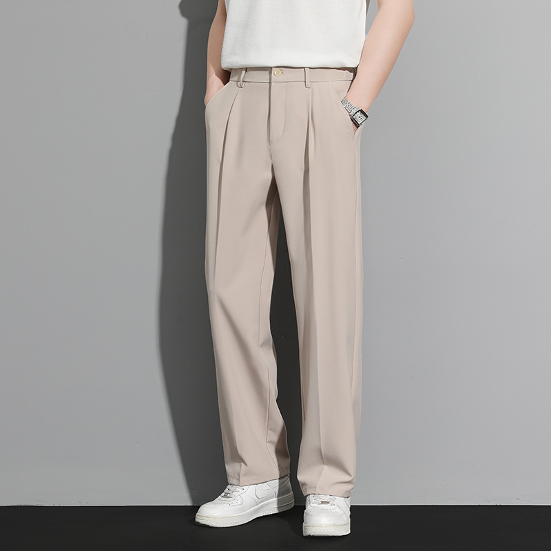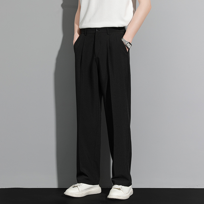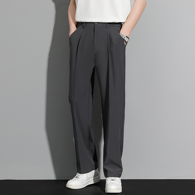 딱따구리 바지 남성용 루즈 스트레이트 팬츠 드레이프 와이드 레그 캐주얼 바지 봄 여름 편안하고 다재다능한 남성용 정장 바지스토어 가기