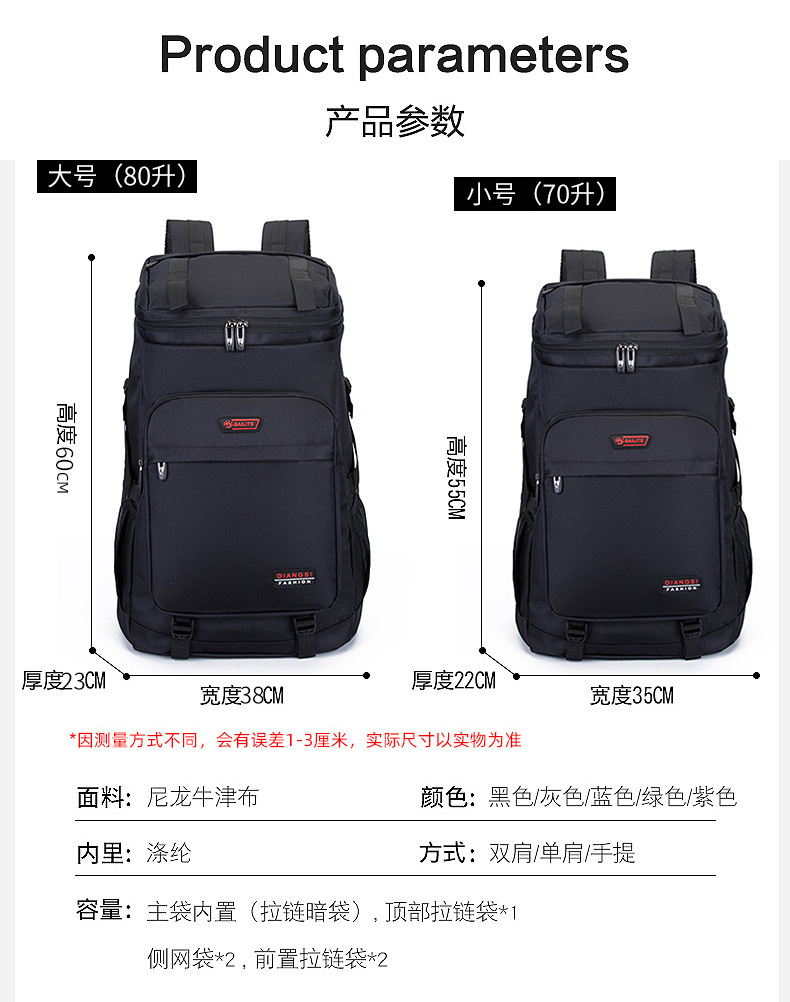 야외 등산 가방 배낭 남성용 대용량 여행 가방 작업 수하물 가방 여성용 여행 가방 초대형 배낭