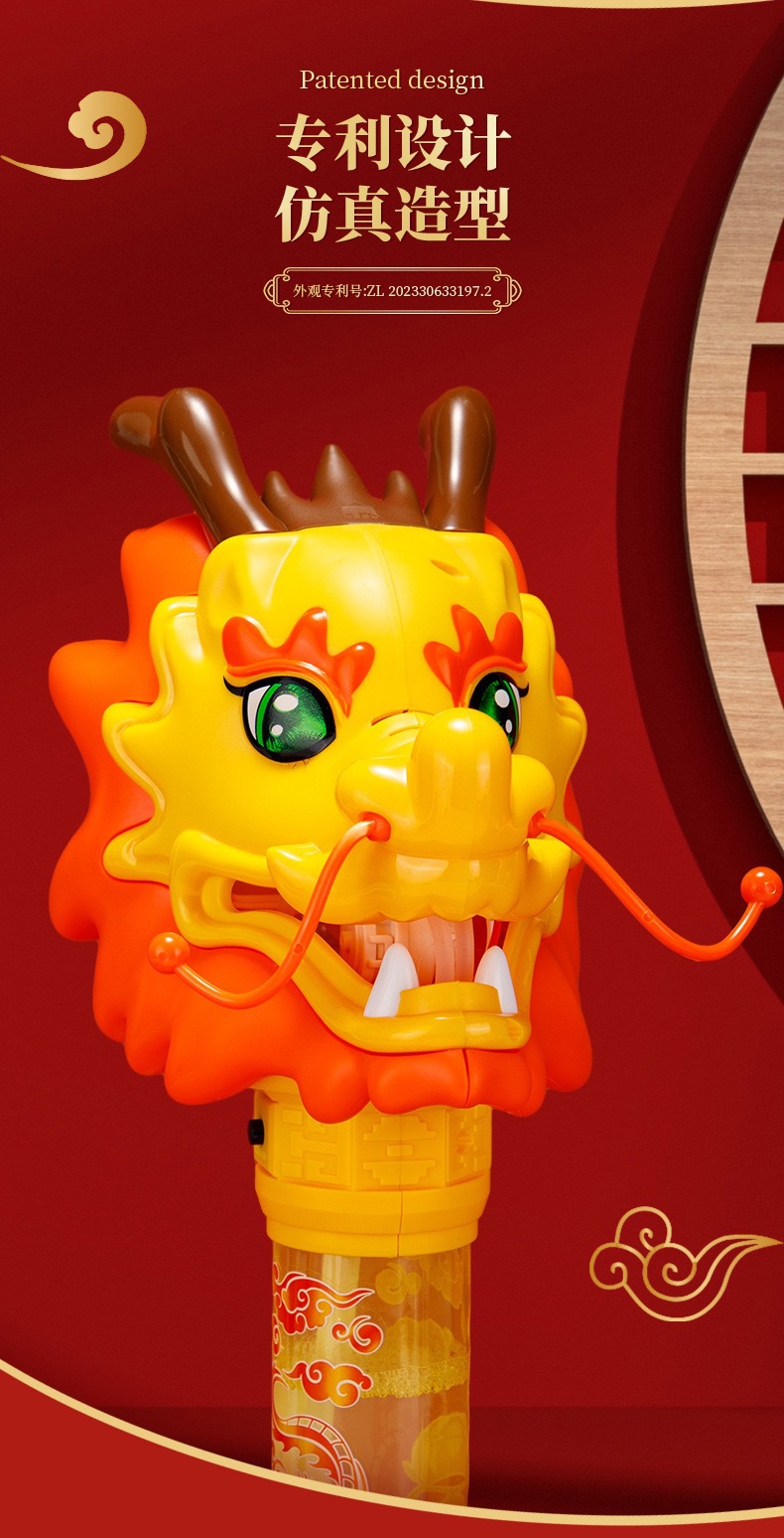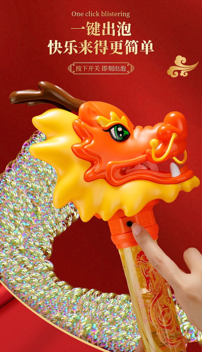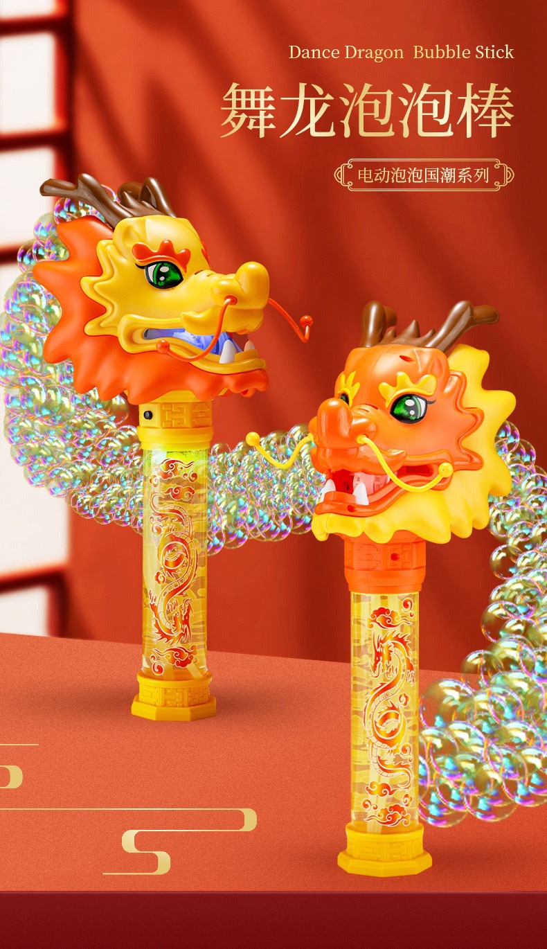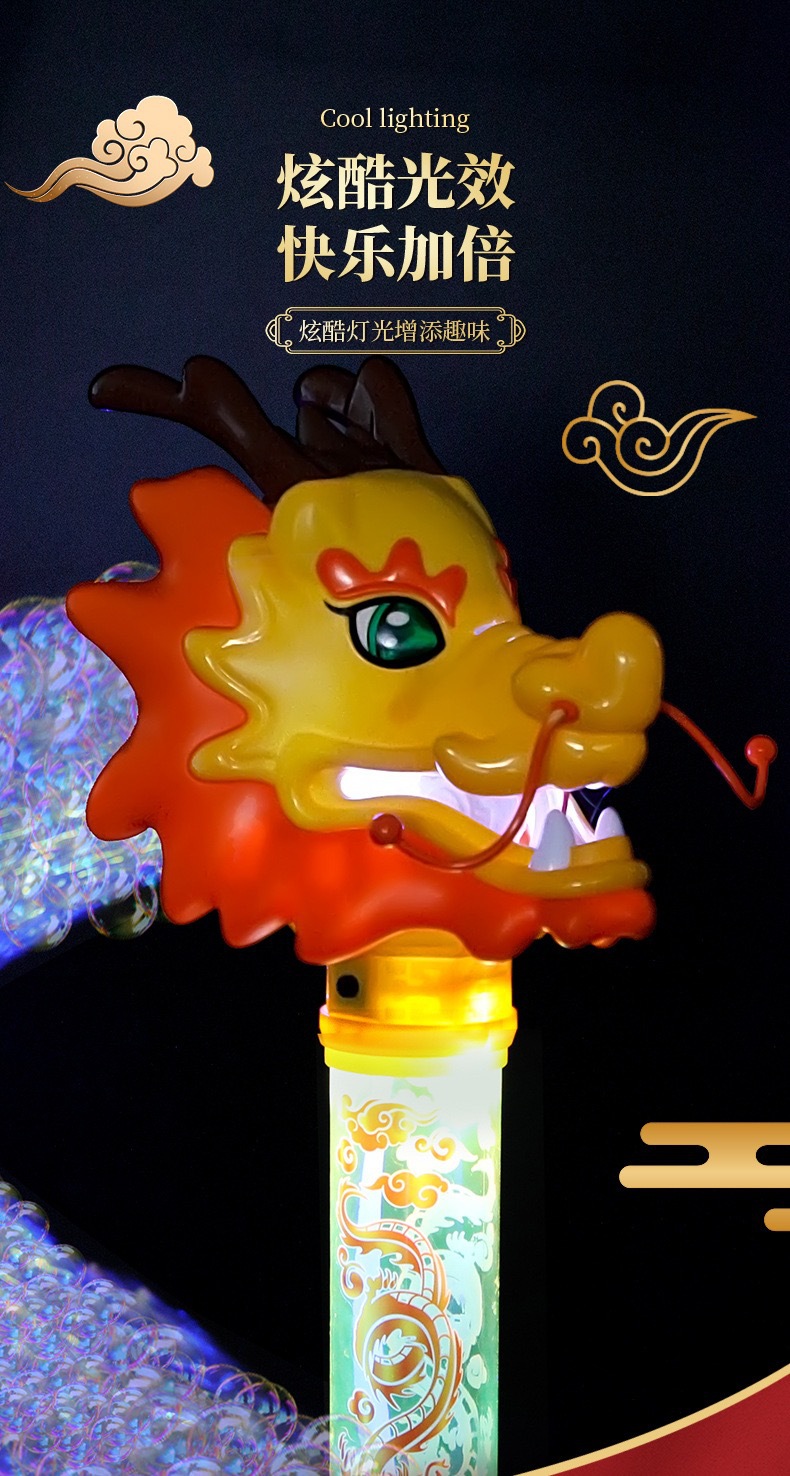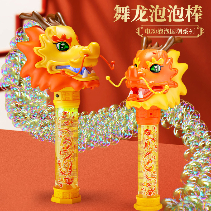Guochao 전기 드래곤 댄스 버블 스틱 전기 버블 머신 크리 에이 티브 인기 새해 분위기 어린이 버블 부는 기계 장난감스토어 가기