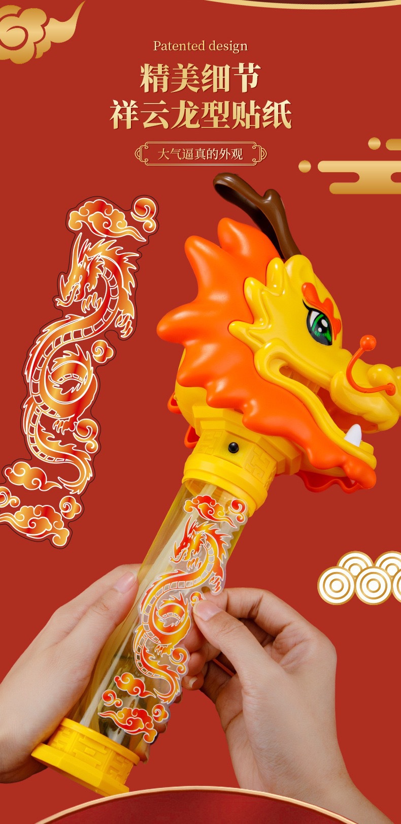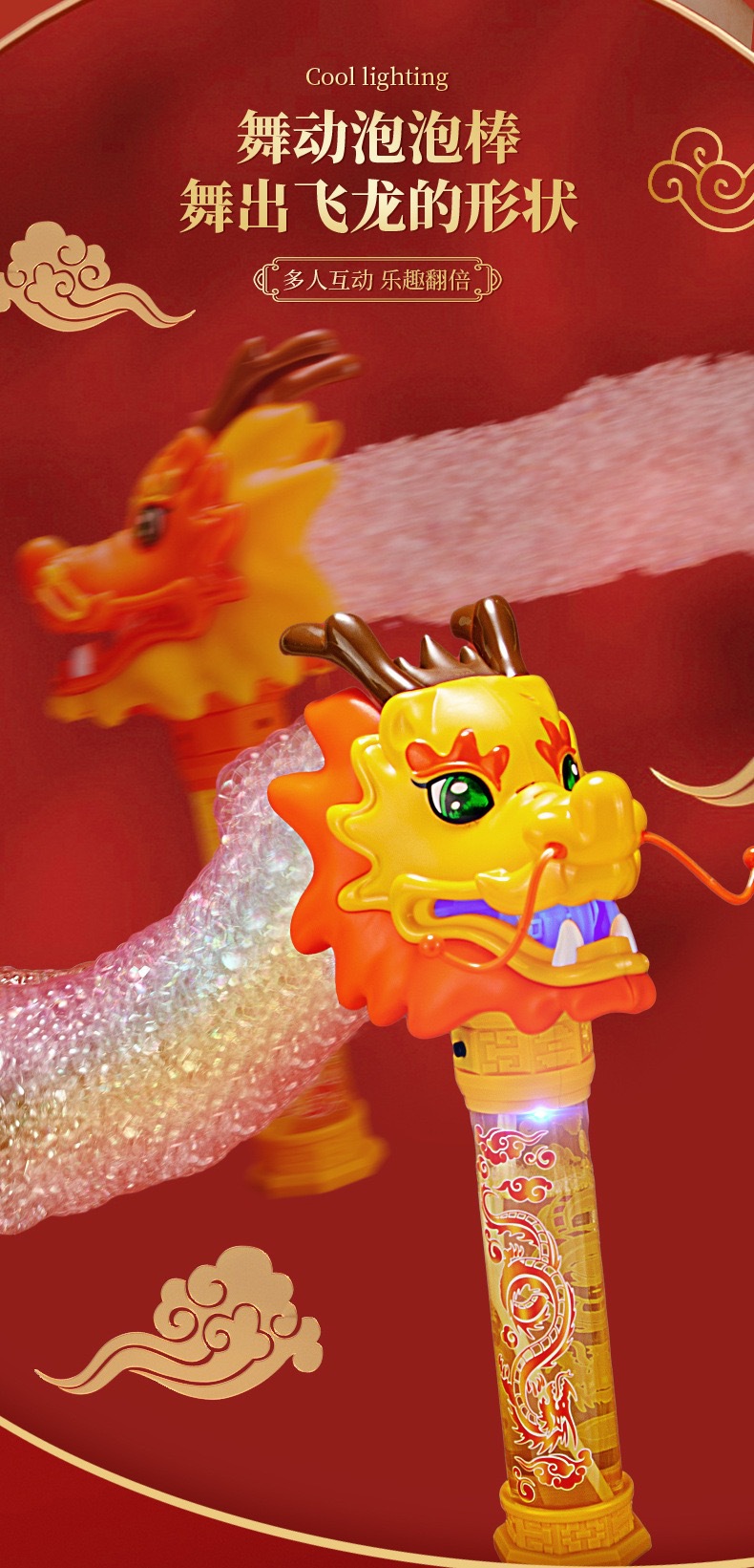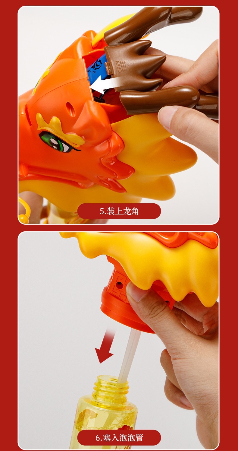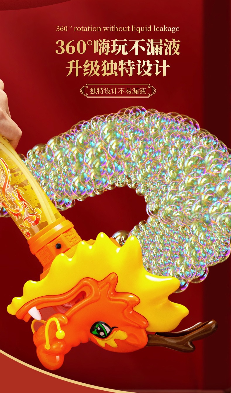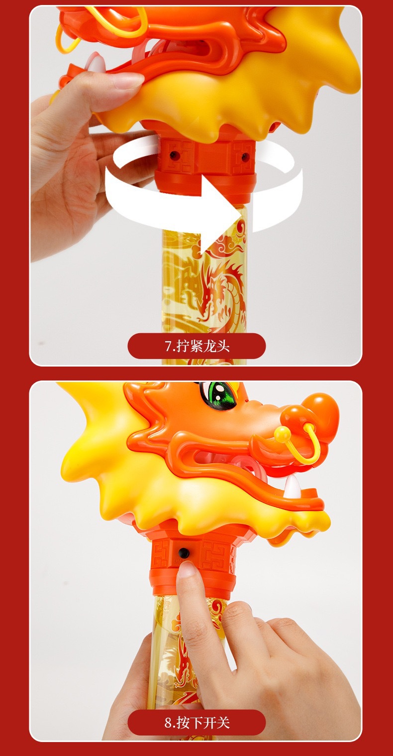 Guochao 전기 드래곤 댄스 버블 스틱 전기 버블 머신 크리 에이 티브 인기 새해 분위기 어린이 버블 부는 기계 장난감스토어 가기