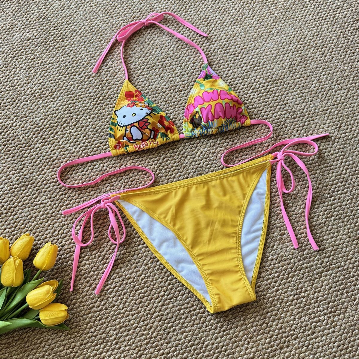 2025 새로운 귀여운 수영복 여름 해변 휴가 하와이 스타일 유행 트로피컬 스플릿 비키니 여성스토어 가기