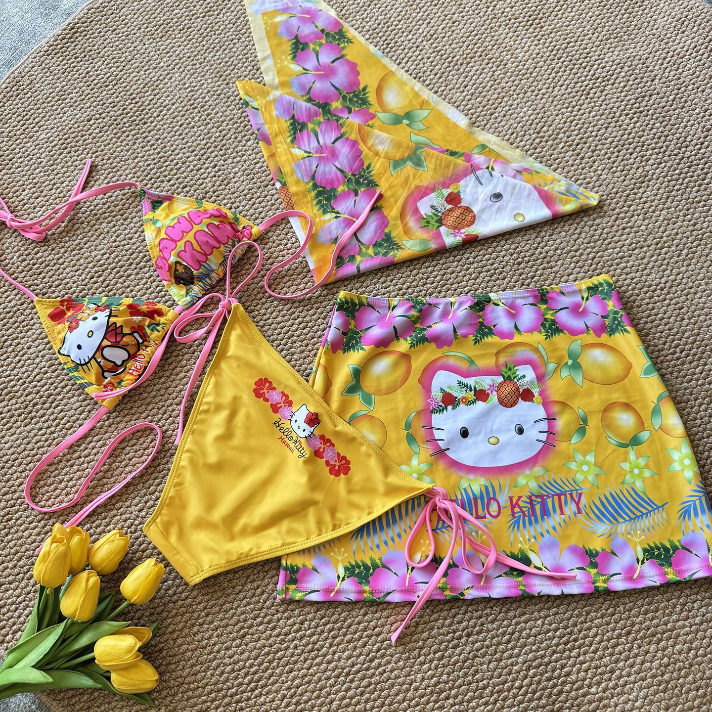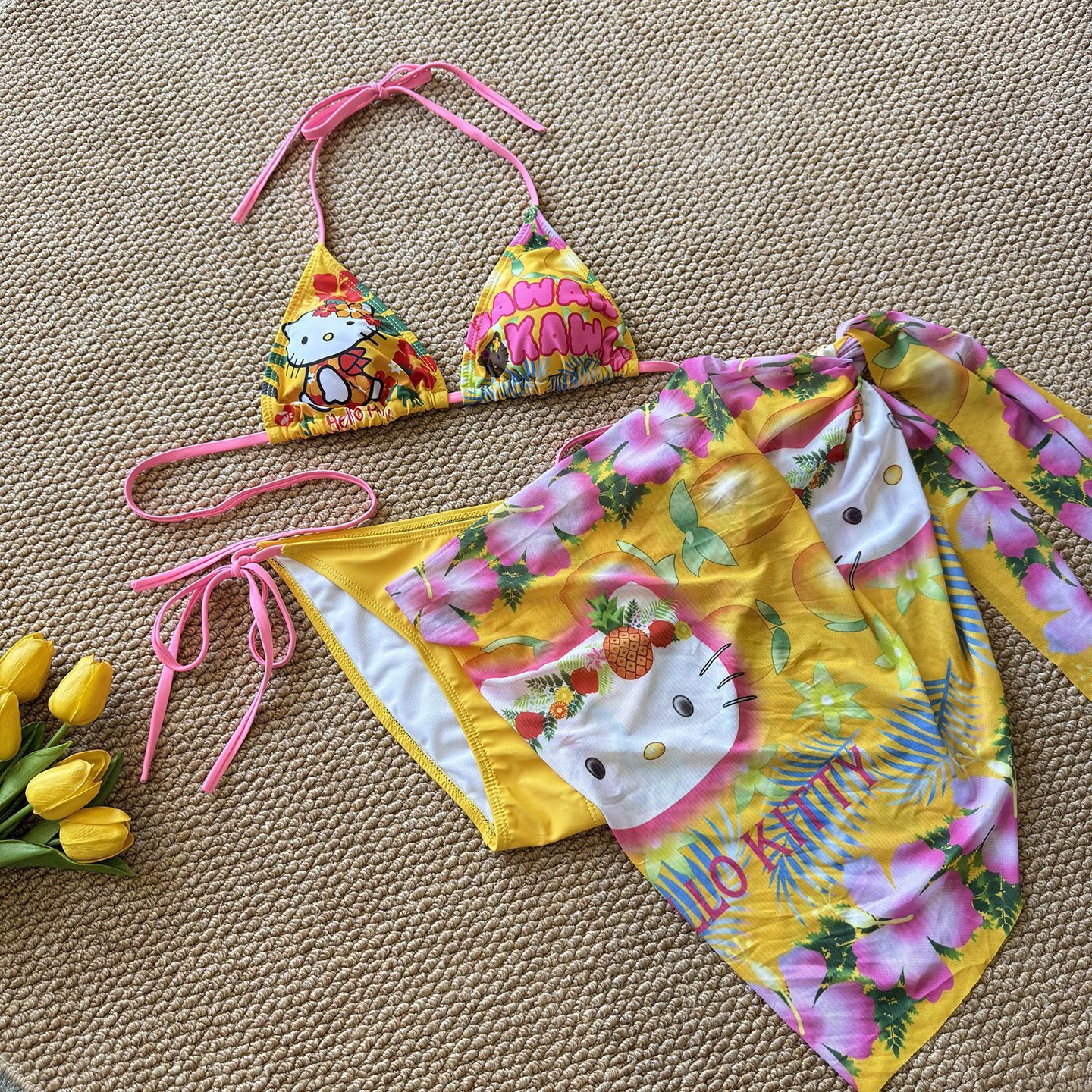 • 새끼 고양이 비키니 + 스카프 + 스커트