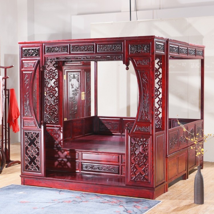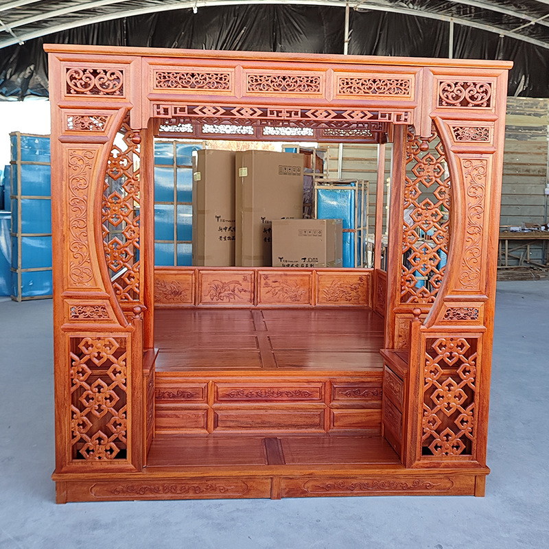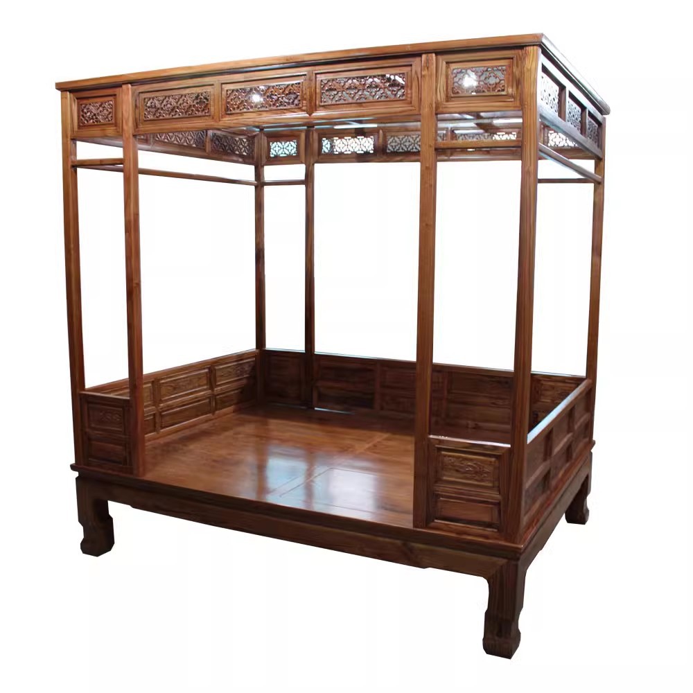 맞춤형 중고풍 침대, 고전적인 고대풍 달빛 동굴 침대, 금화리 나무, 중국식, 전체 원목, 수공예, 해외배송