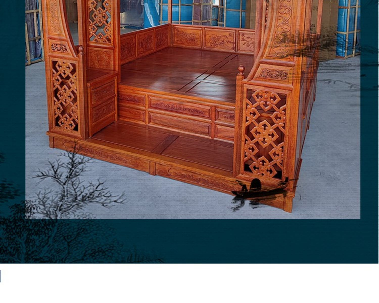 맞춤형 중고풍 침대, 고전적인 고대풍 달빛 동굴 침대, 금화리 나무, 중국식, 전체 원목, 수공예, 해외배송스토어 가기
