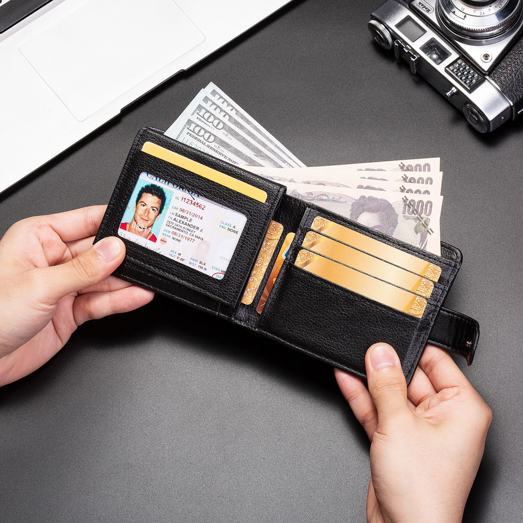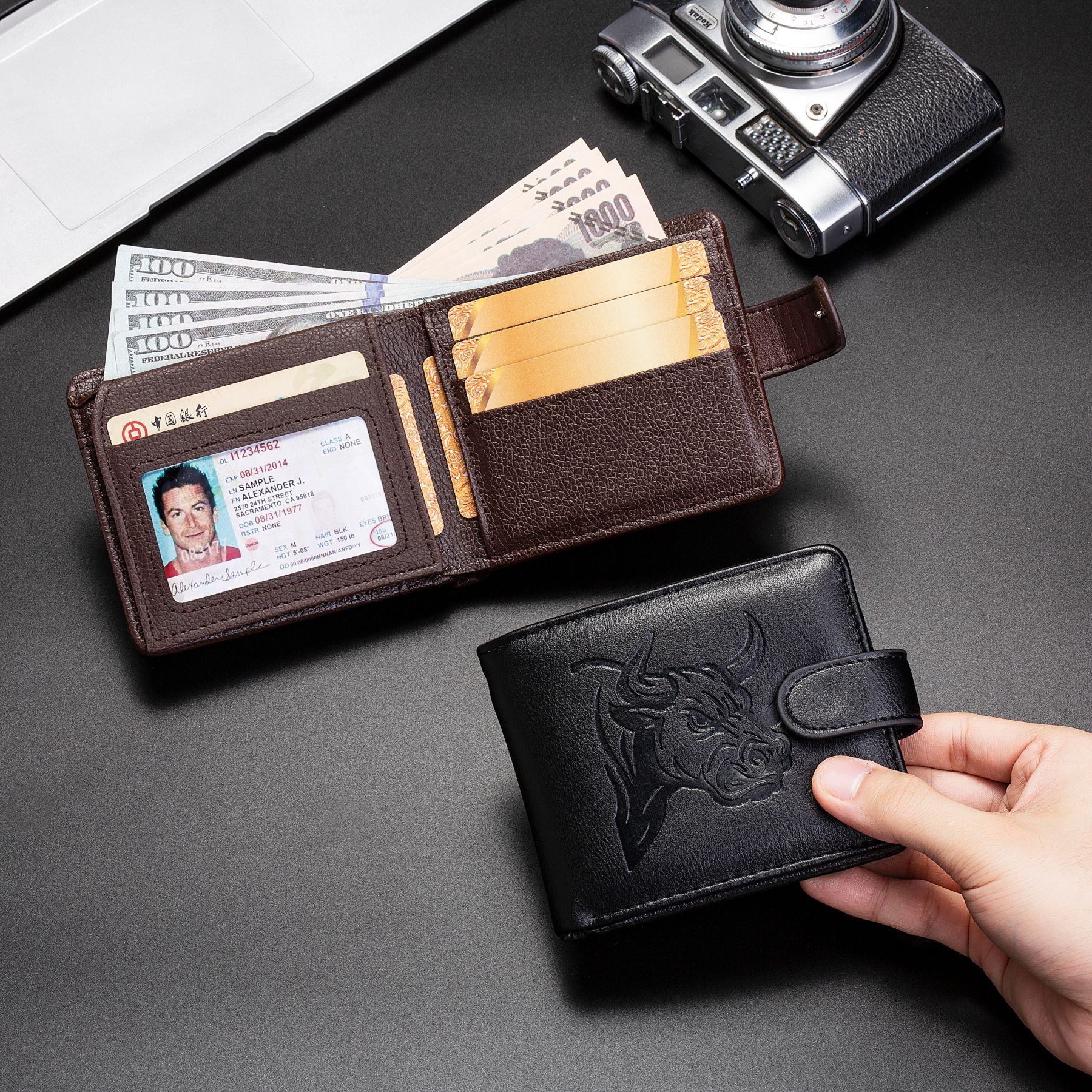 국경 간 새로운 남성용 지갑, 고급 수평 스타일, 대용량, 멀티 카드 슬롯 동전 지갑, 스냅 버튼, 비즈니스 남성용 카드 홀더, 남성용스토어 가기