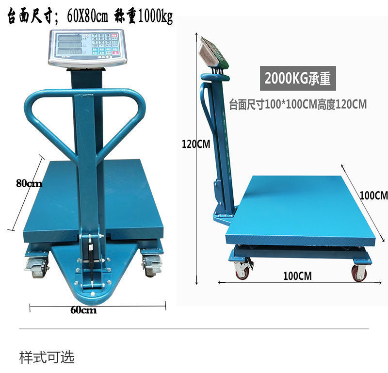 바퀴가 달린 전자 저울 상업용 600kg 모바일 산업용 계량 전자 트롤리 바닥 저울 1톤 기타스토어 가기