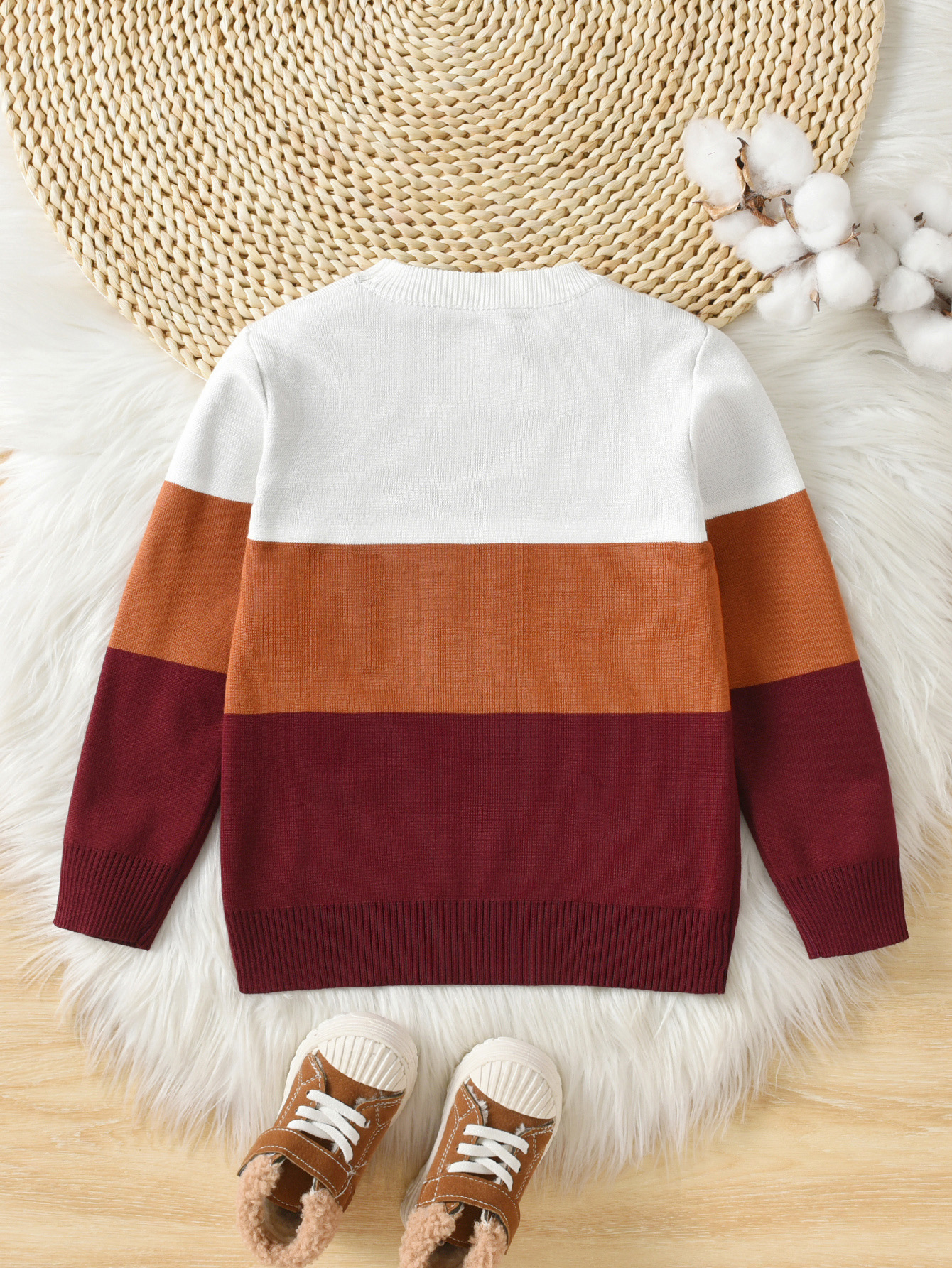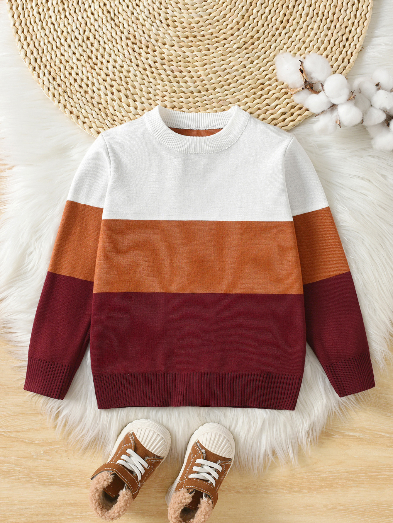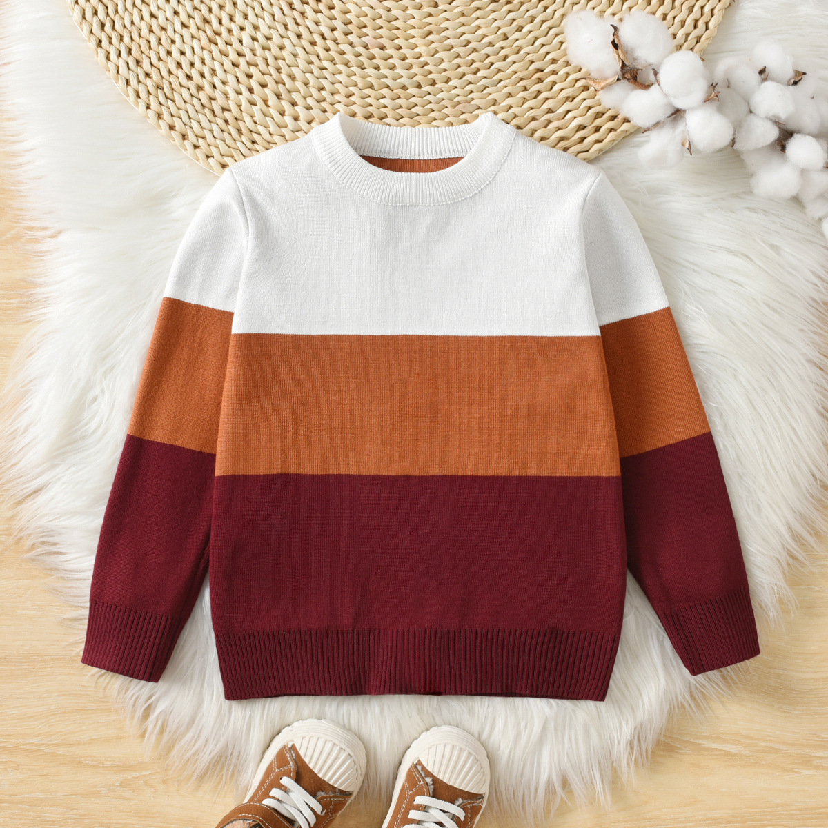 소년 가을, 겨울 새로운 대학 스타일 대비 색 줄무늬 캐주얼 라운드 넥 풀오버 스웨터 더블 레이어 자카드스토어 가기