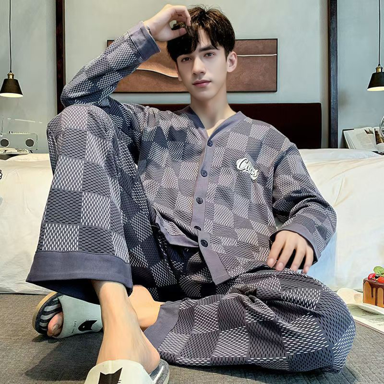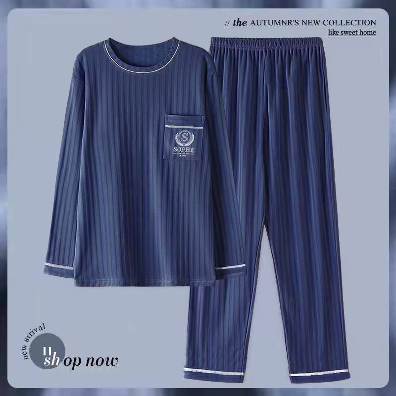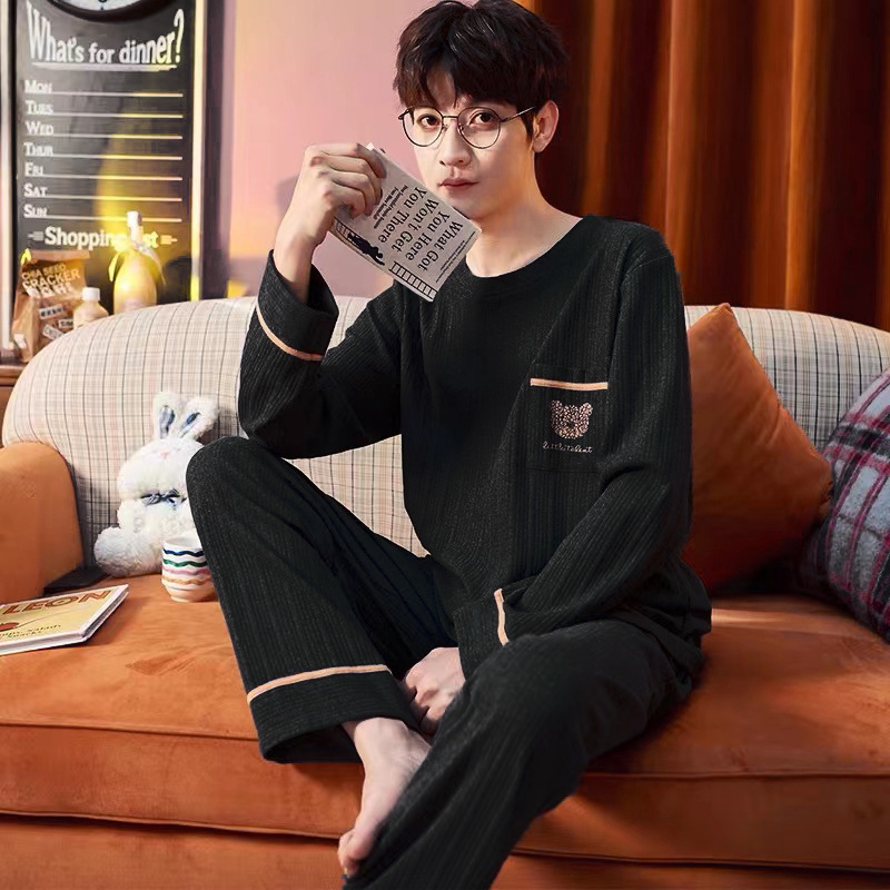 남성용 잠옷 봄, 가을 면 긴팔 대형 사이즈 가을, 겨울 홈웨어 세트 남성용 겨울 캐주얼 웨어러블스토어 가기