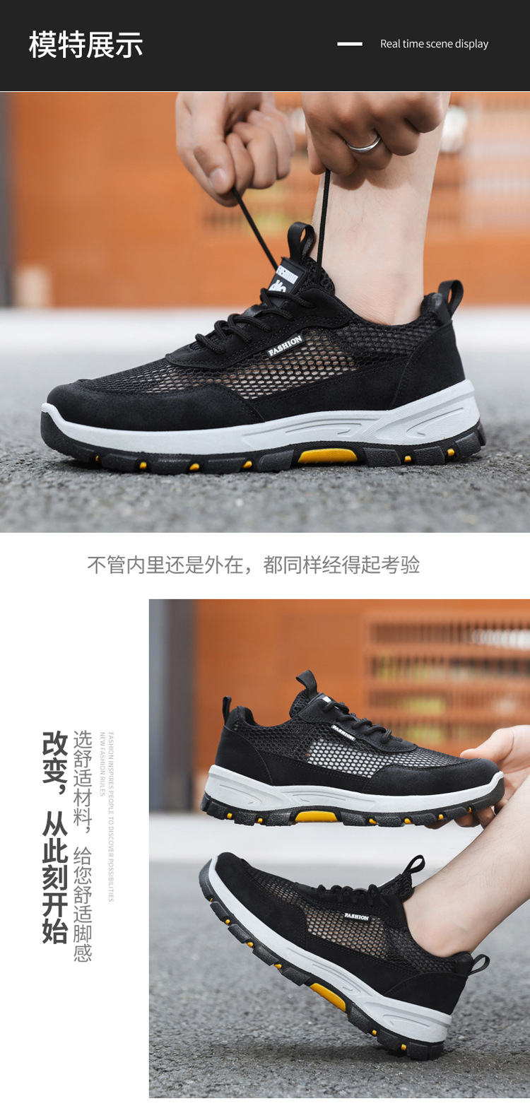 2025 새로운 메쉬 신발 다목적 캐주얼 신발 통기성 미끄럼 방지 패션 경량 등산 스포츠 남성 신발 국경 간 도매스토어 가기