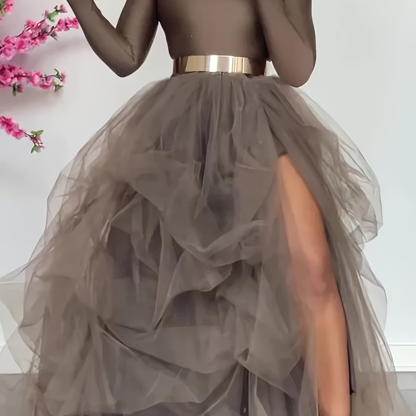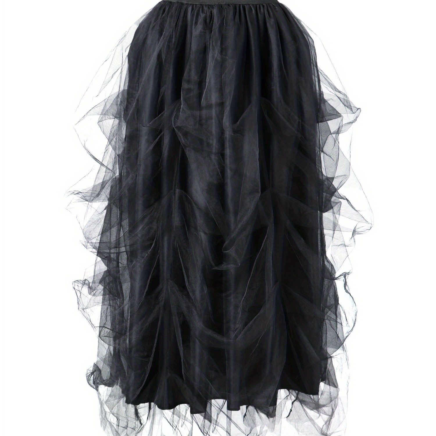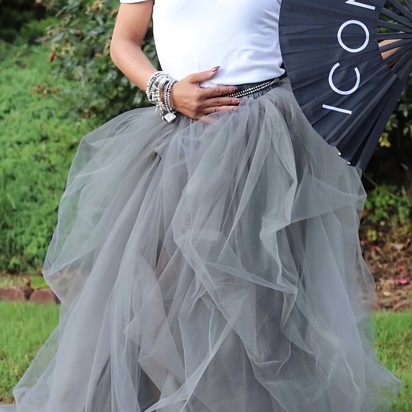 2025년 새로운 유럽 및 미국 스타일의 튤 바닥 길이 스커트, 레이어드 하이 웨이스트 크로스보더 배송