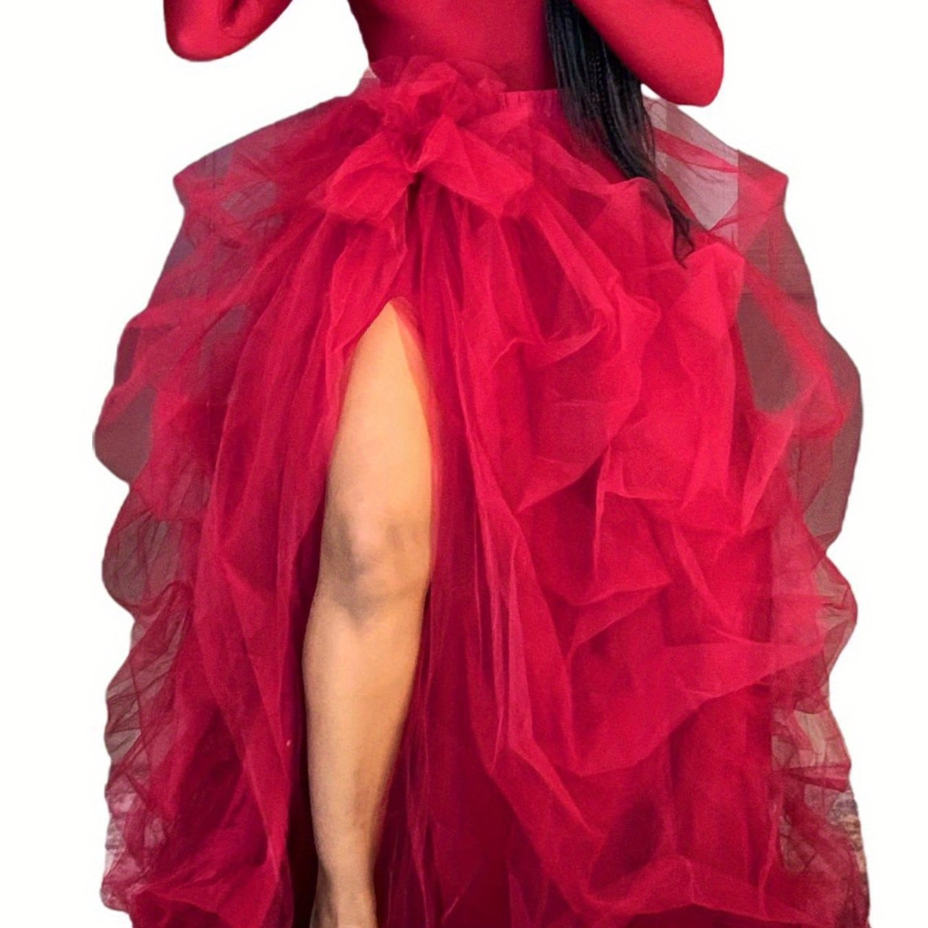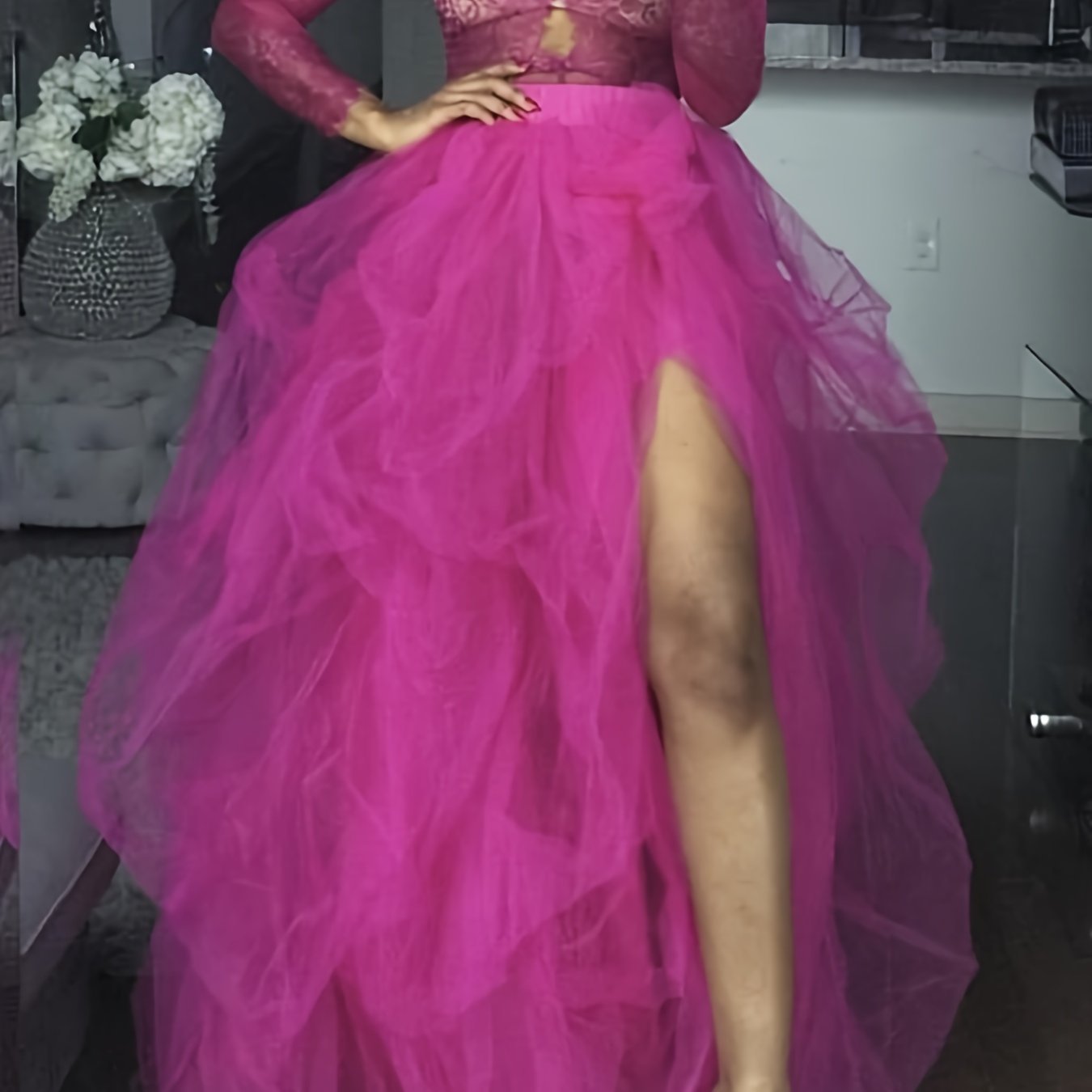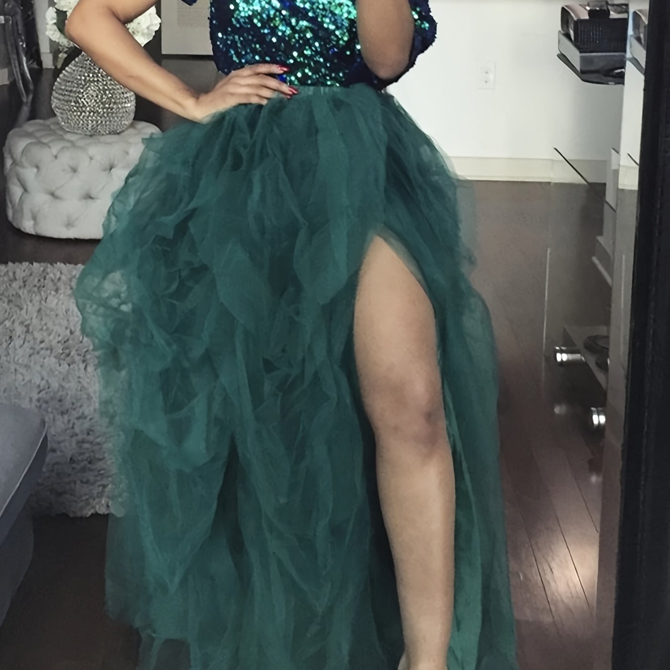 2025년 새로운 유럽 및 미국 스타일의 튤 바닥 길이 스커트, 레이어드 하이 웨이스트 크로스보더 배송