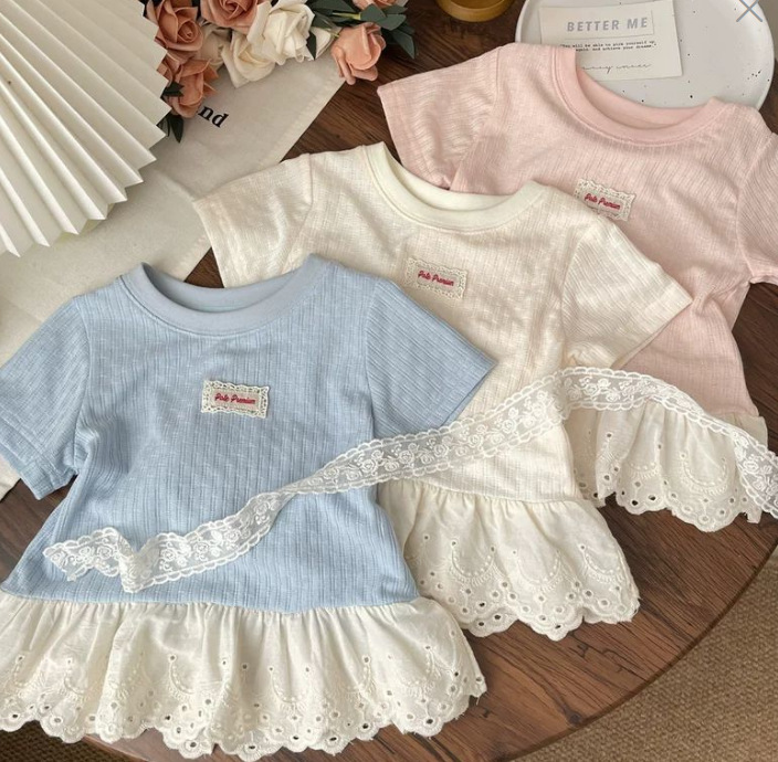 여름 소녀 패치 레이스 반팔 티셔츠 베이비 스커트 탑 어린이 바닥 셔츠 여성스토어 가기