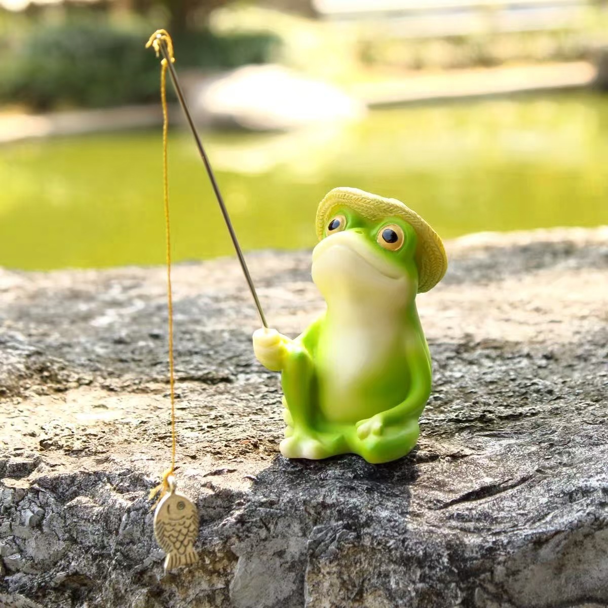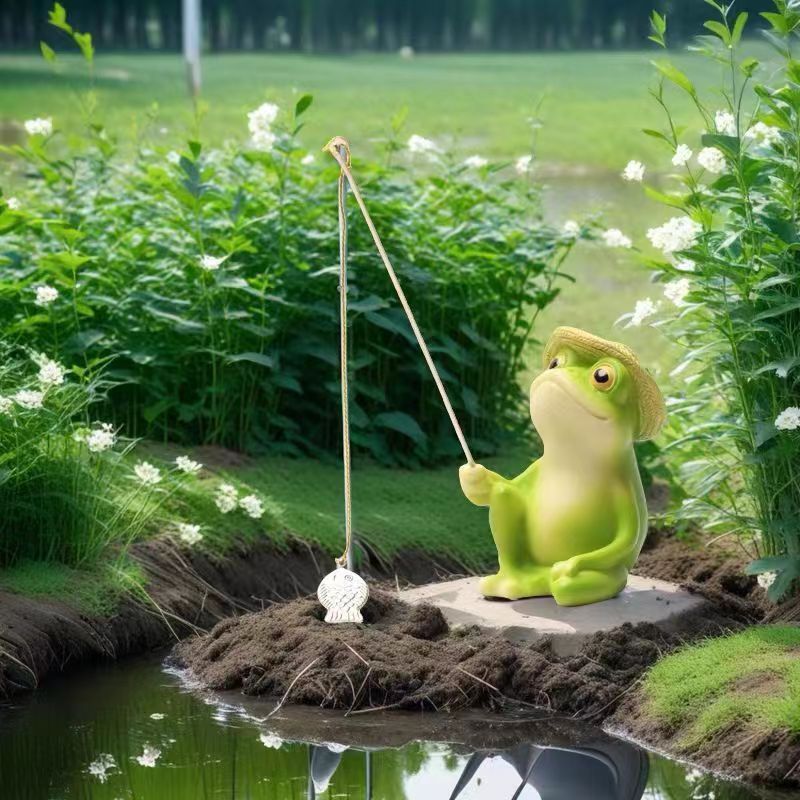 시뮬레이션 개구리 낚시 장식품, 조경 안뜰 정원 장식, 물고기 연못, 가짜 바위 조경, 창의적인 조경 물고기 탱크 개구리